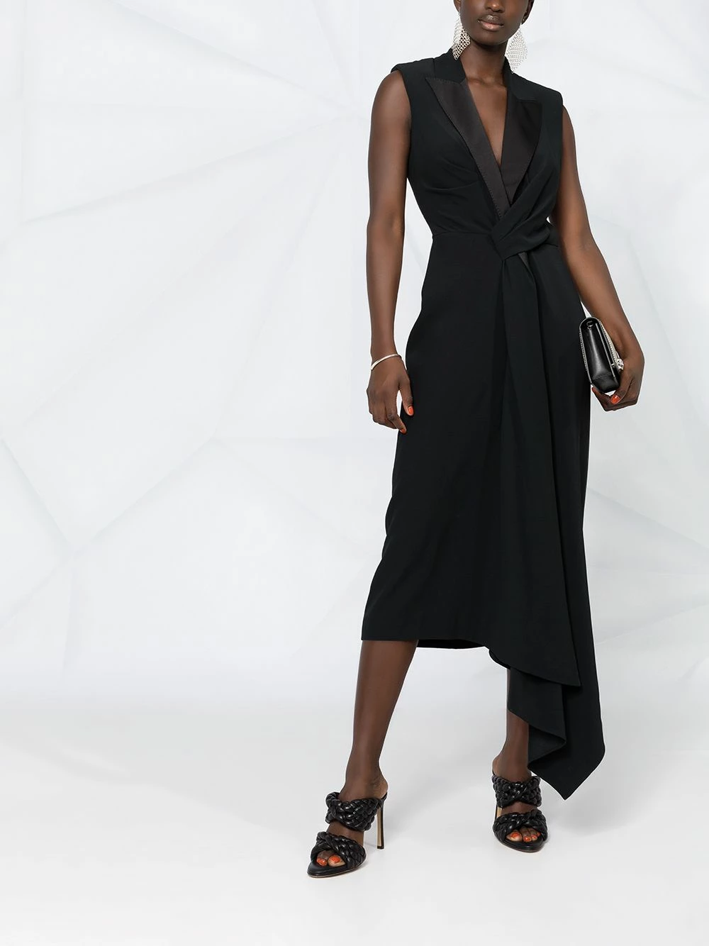 The perfect black dress exists, and Alexander McQueen is responsible for it. Punctuated by draped detailing and an asymmetric hem, this one is fit for a Sunday brunch or a Friday night dinner with friends. Just perfect.