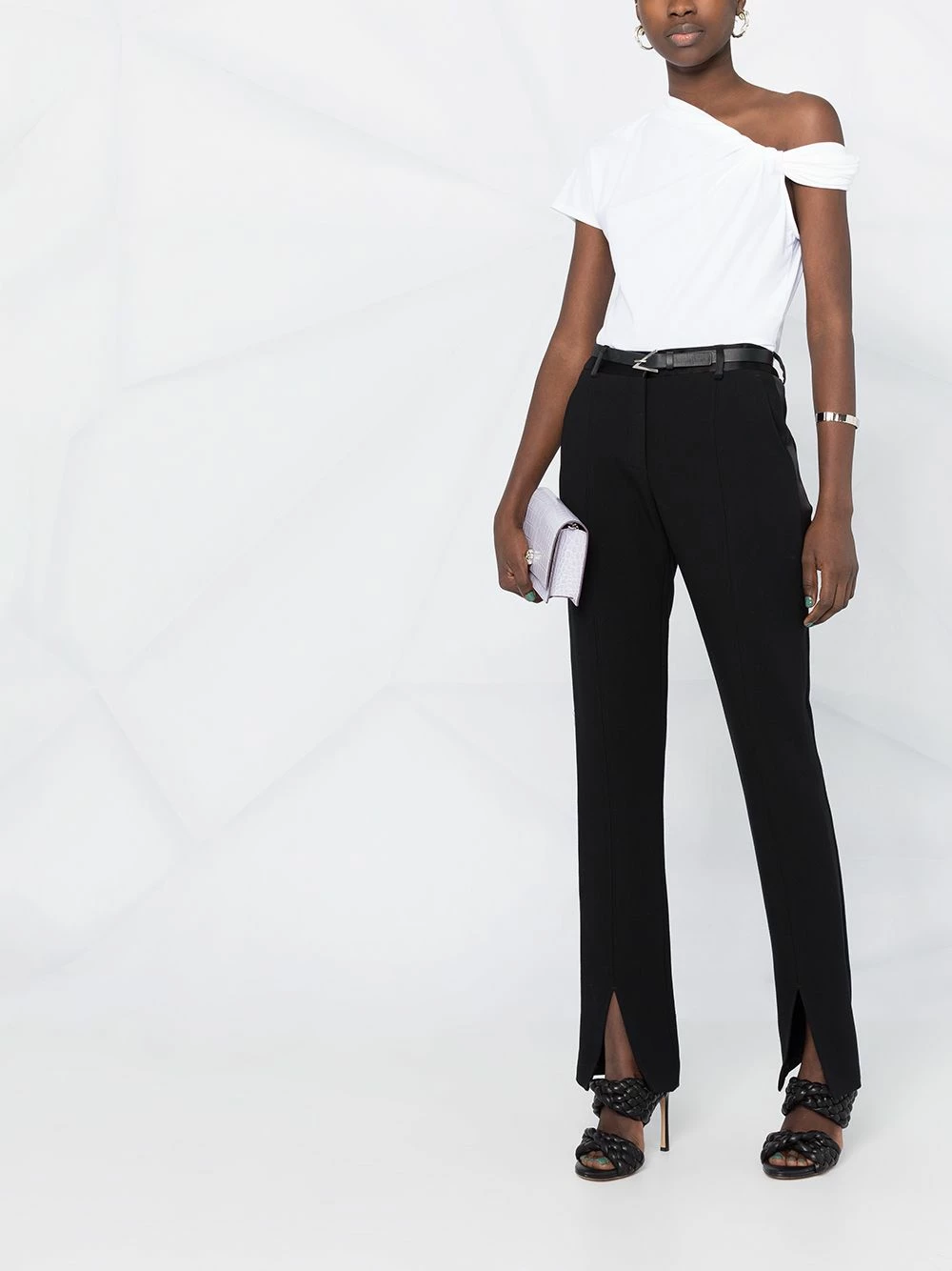 Throw off the balance. In an asymmetric design and pure cotton construction, this top from Alexander McQueen proves that slants are sleek and wonky is wicked. Symmetry is overrated.