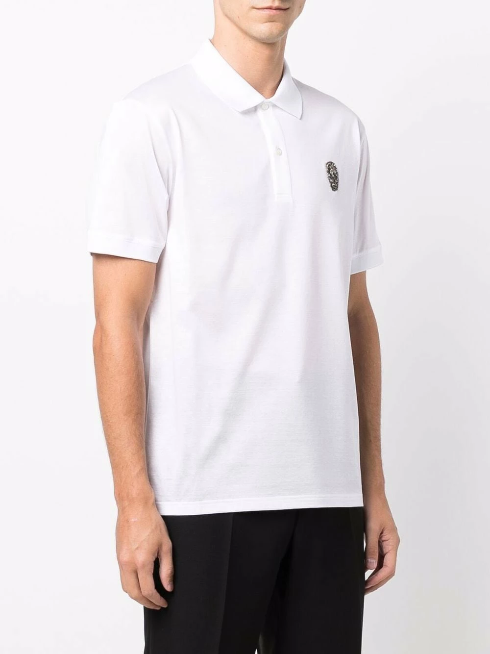 The skull has remained an enduring motif for the Alexander McQueen brand since the label was founded in 1992 and pays homage to the brand’s darkly alluring aesthetic. Envisioned in tonal beading at the chest, the skull emblem acts as the sole detail on this cotton and silk polo shirt.