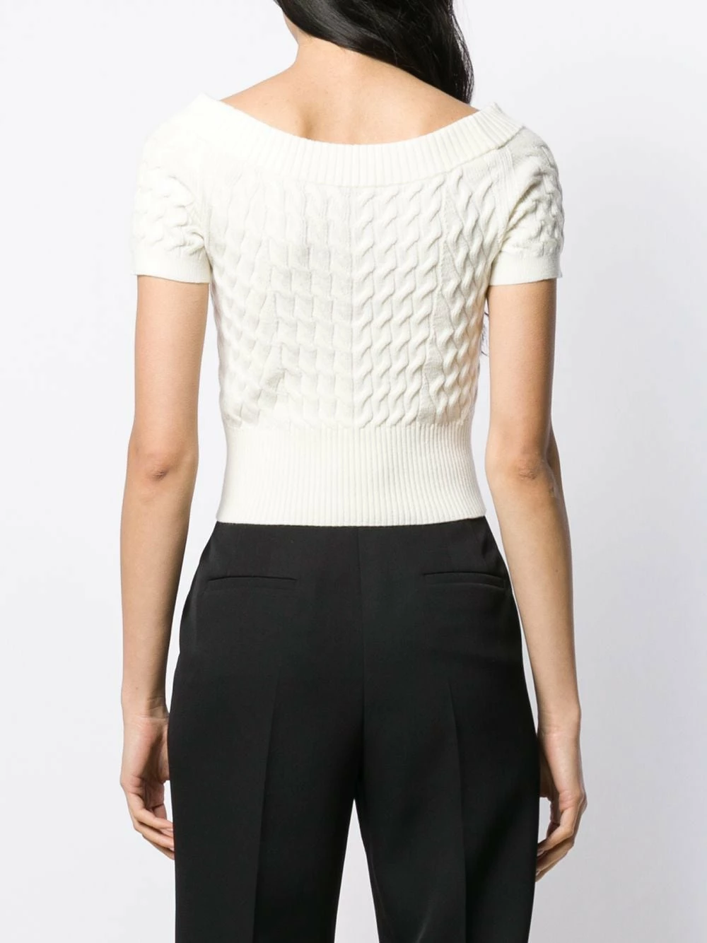 Relationship status: knitting ourselves together with Alexander McQueen. Or with this knitted top, if you may. Either way, we won’t be getting apart. Never. Ever. Featuring a cable knit, a boat neck, short sleeves, a ribbed hem and cuffs and a fitted silhouette.