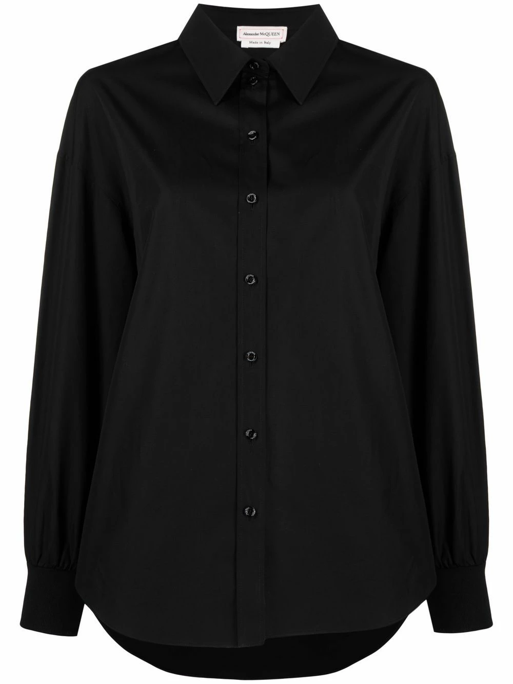 Get the basics right and the rest will follow. Cut from crisp cotton, this black shirt from Alexander McQueen falls to a curved hem for a smart-casual silhouette. You can’t fault a classic.