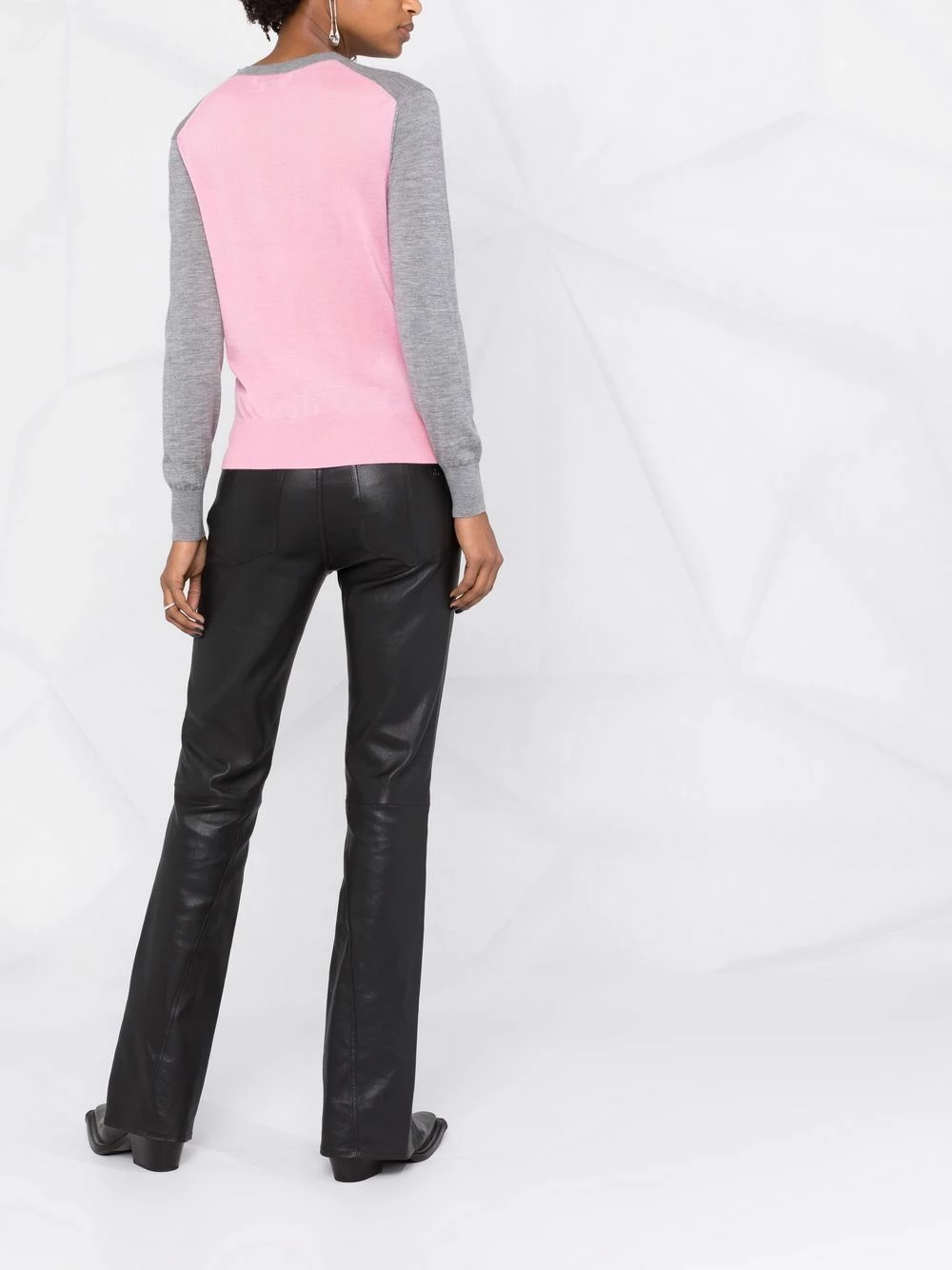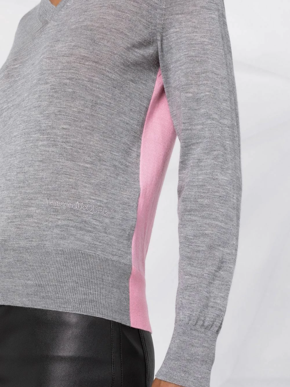 Alexander McQueen combines a classic knitwear silhouette with a contemporary colour block design in this Italian-crafted cashmere knit jumper from the brand’s AW21 collection.Â