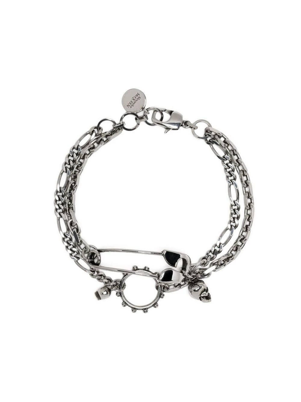 Charms are in. Case in point: this striking silver-tone brass charm chain bracelet from Alexander McQueen. Get ahead of the curve in this charming piece.
