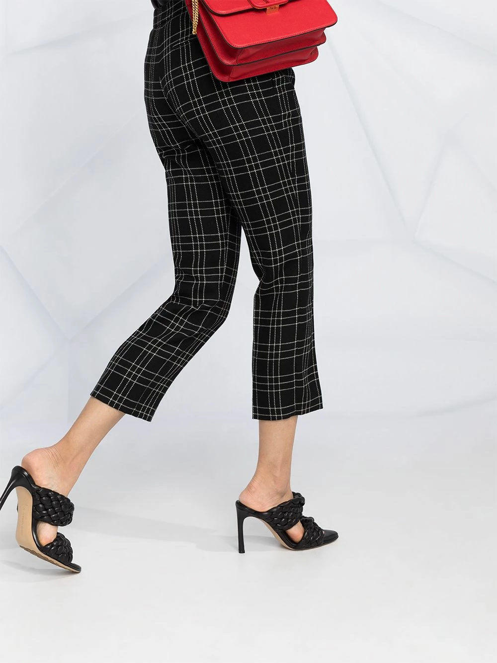 These are worth checking out. These black and white virgin wool checked cropped trousers from Alexander McQueen will be your new favourite alternative to jeans. Make some space in your wardrobe.