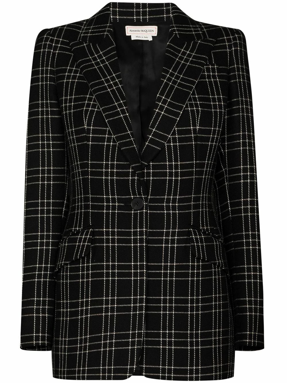 Thinking about tailoring your wardrobe in a different way? Smarten up and exude class in this suave checked pattern blazer from Alexander McQueen that will have you feeling confident in its structured shoulder silhouette. Suits you very well.
