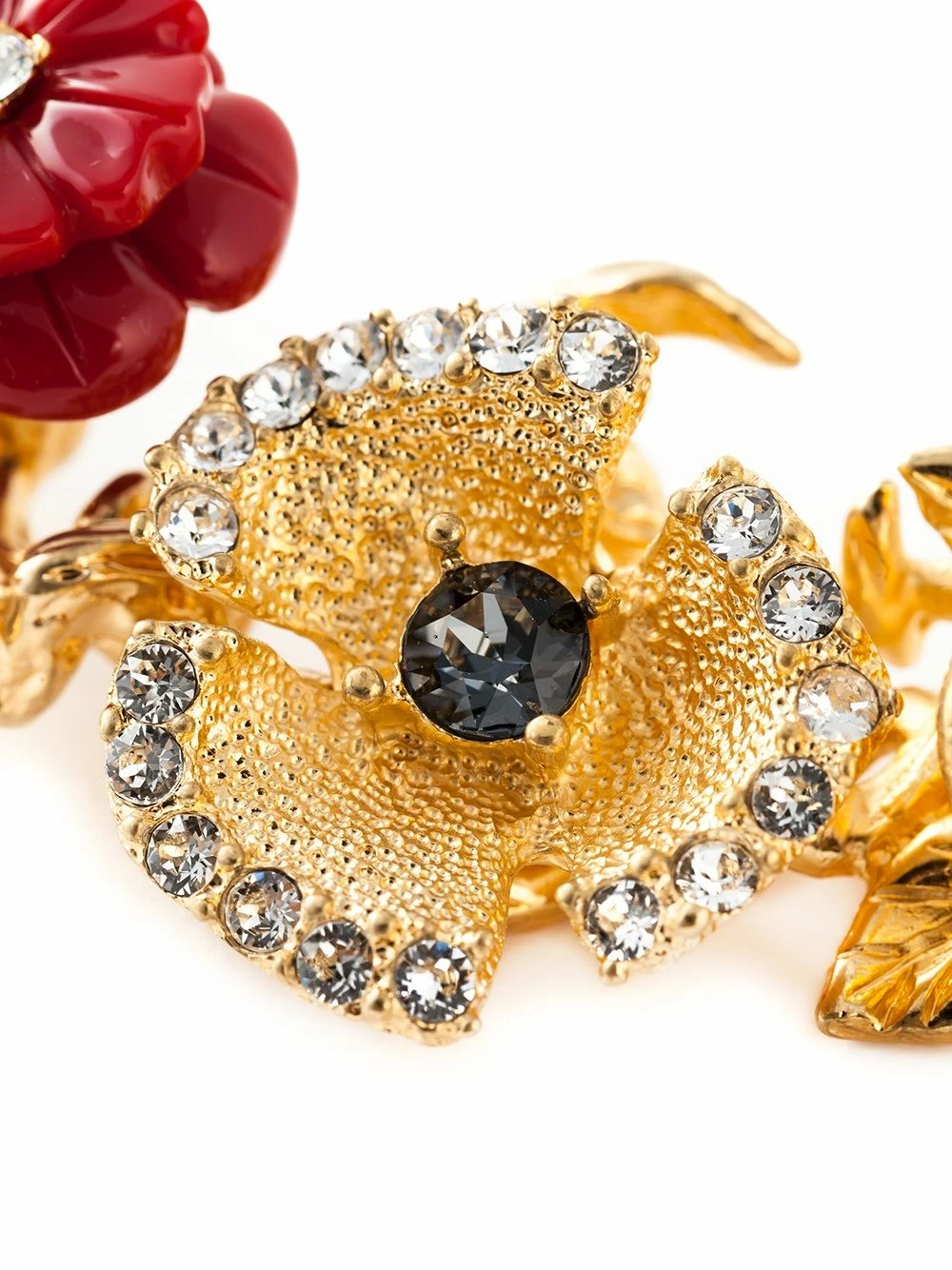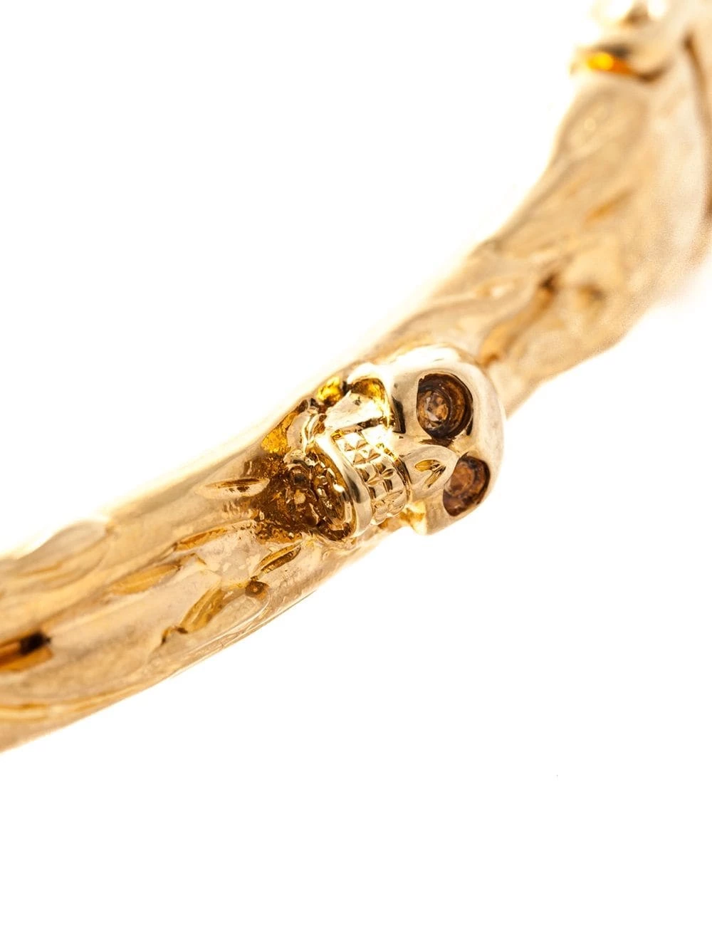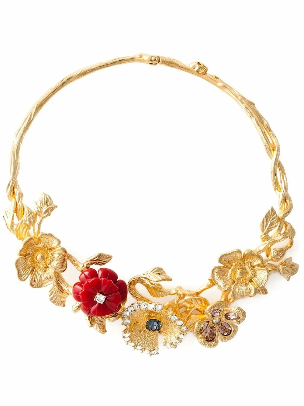 Gold-tone brass cherry blossom necklace from Alexander McQueen featuring crystal accents and skull details.