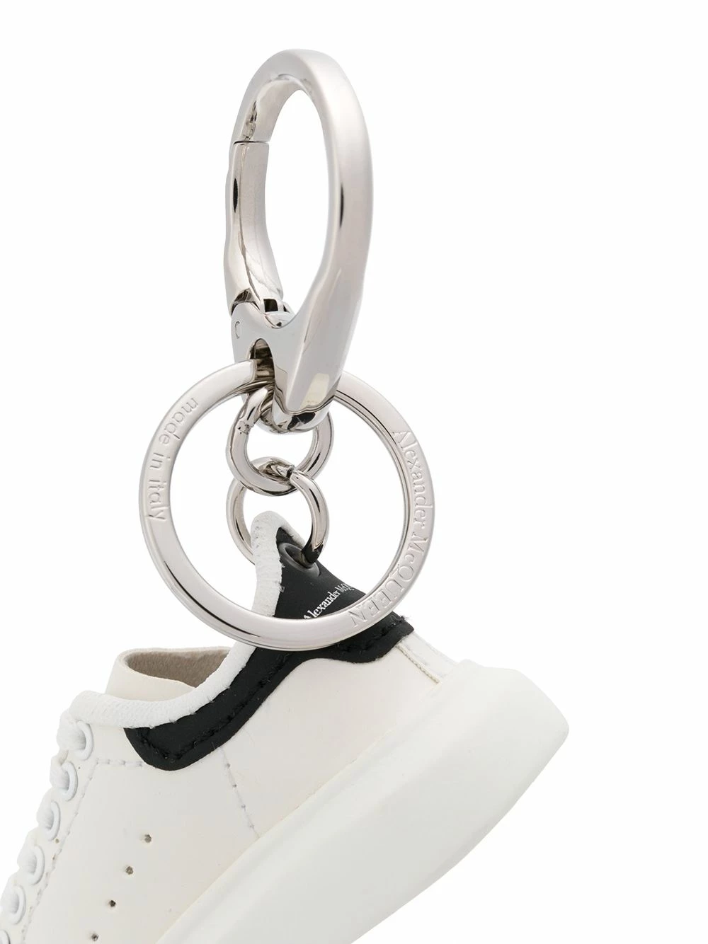 White leather chunky sole sneaker keyring from Alexander McQueen featuring silver-tone hardware.