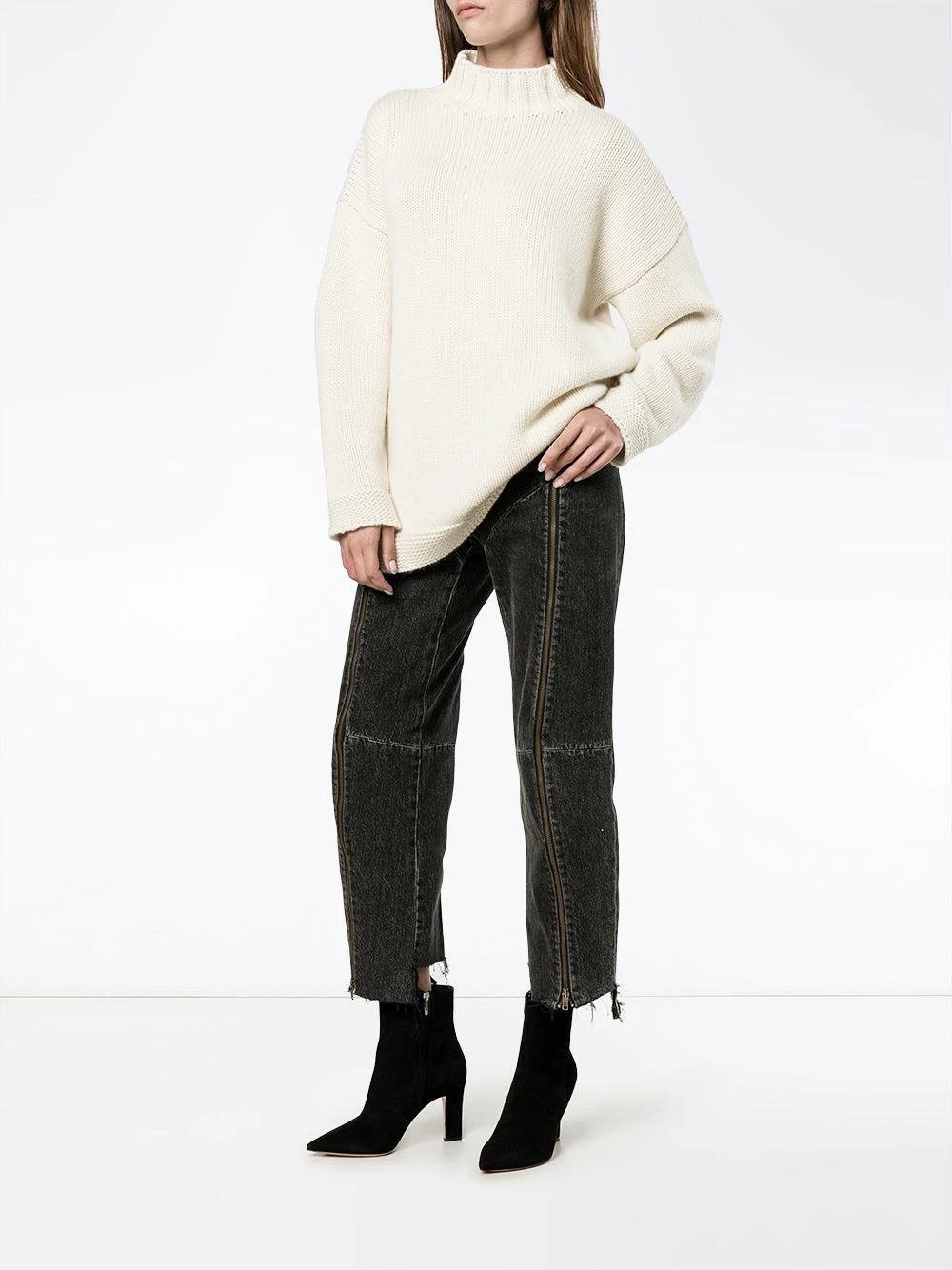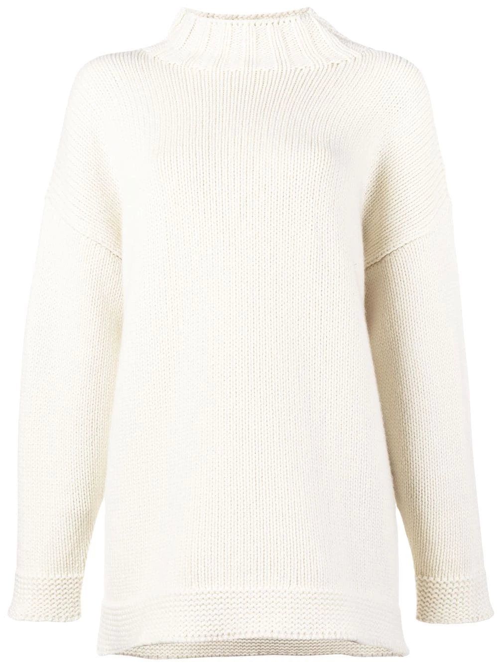 Cream cashmere chunky turtle neck knit from Alexander McQueen featuring an oversized fit and long sleeves.