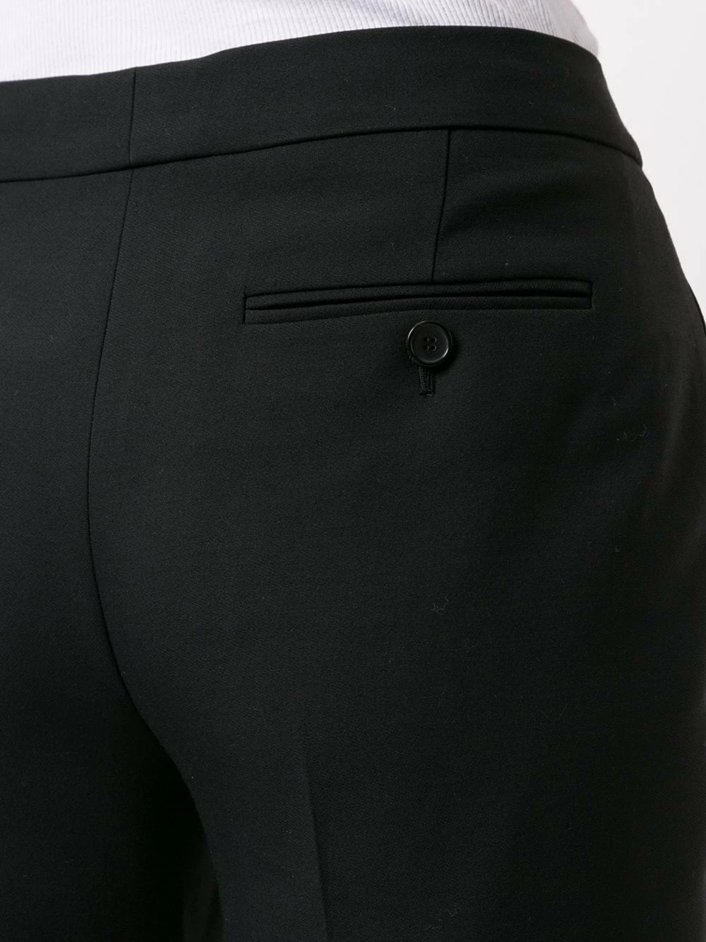 Home to the edgy and mysteriously alluring, Alexander McQueen is an encounter of finesse and duskiness. This piece is a fine example of that. Showcasing these black wool & silk classic straight-cut trousers from Alexander McQueen featuring a hook and zip fastening, side slit pockets and a tailored design.