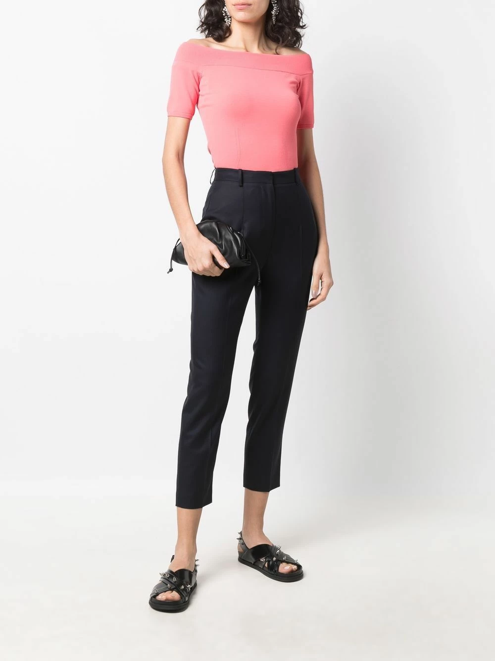 Produced in a pink knitted design, this Alexander McQueen top features a delicate ribbed edge and a cold-shoulder silhouette for an elegant finish.Â