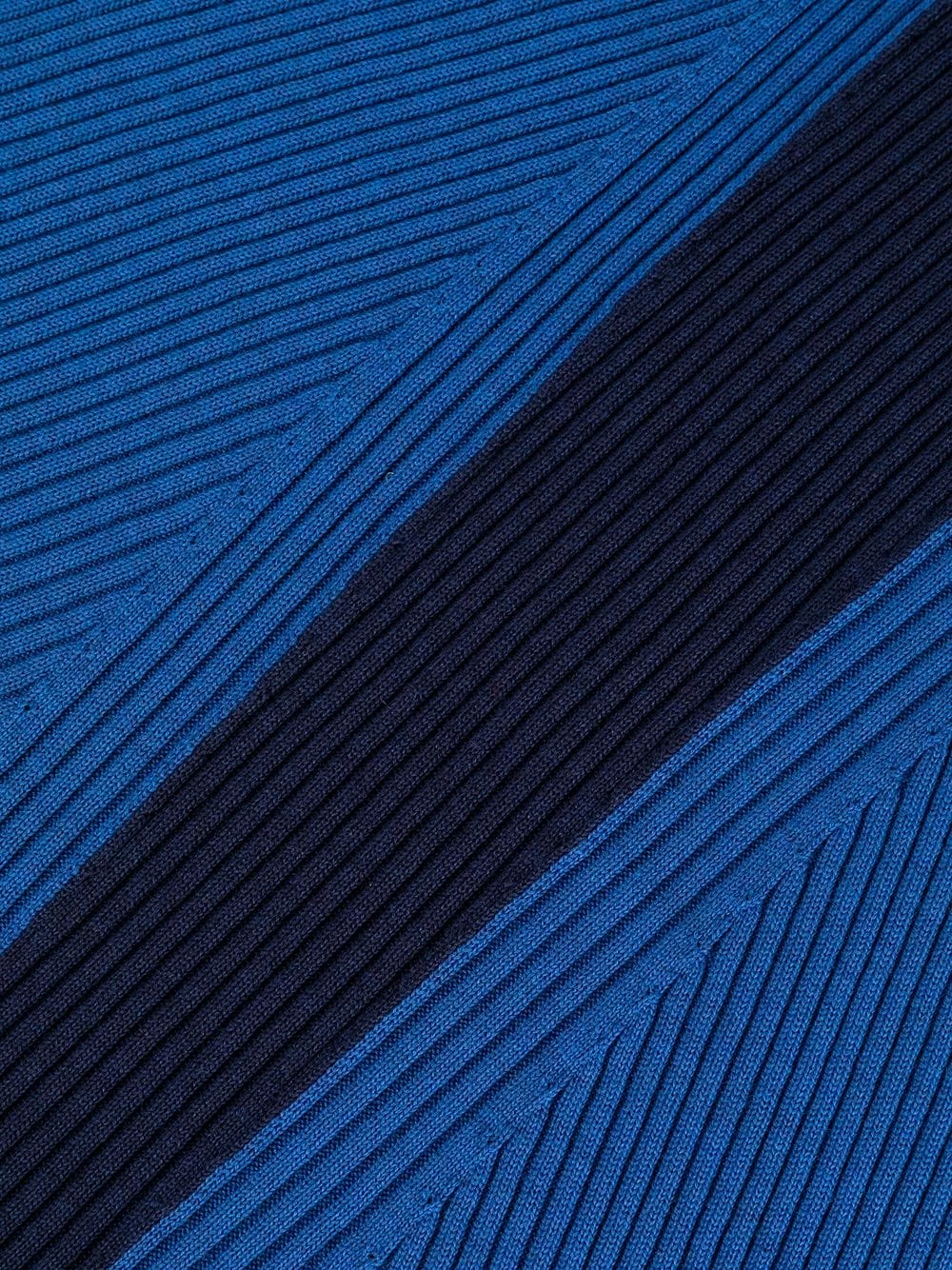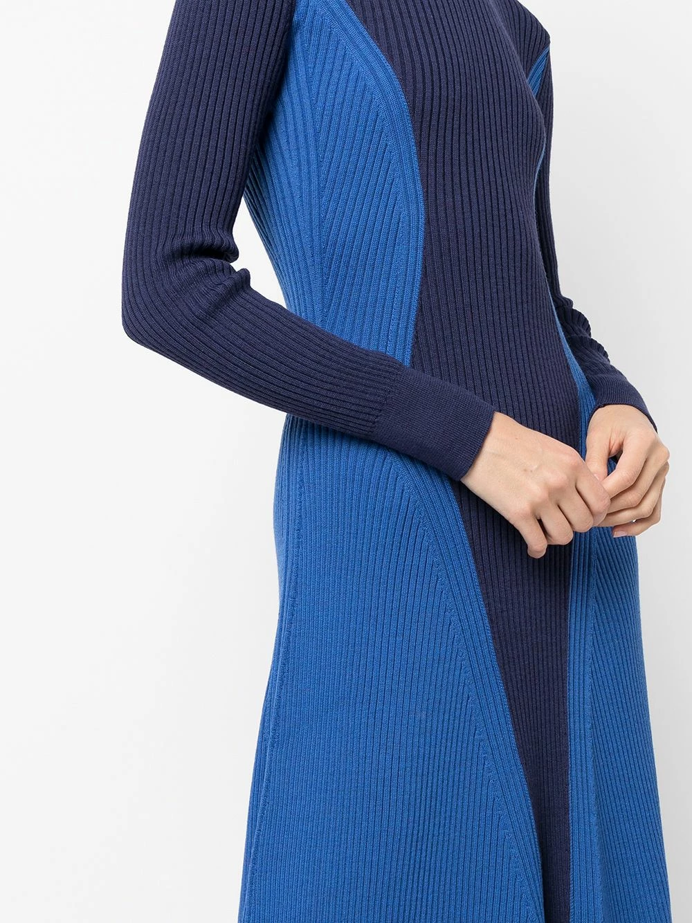 Alexander McQueen’s dress proves that knitwear can be as sleek as it is cosy. Spun from ribbed-knit wool, this A-line iteration is decorated with a graphic design at the front in a tonal blue hue.