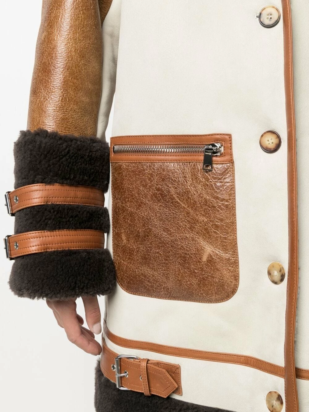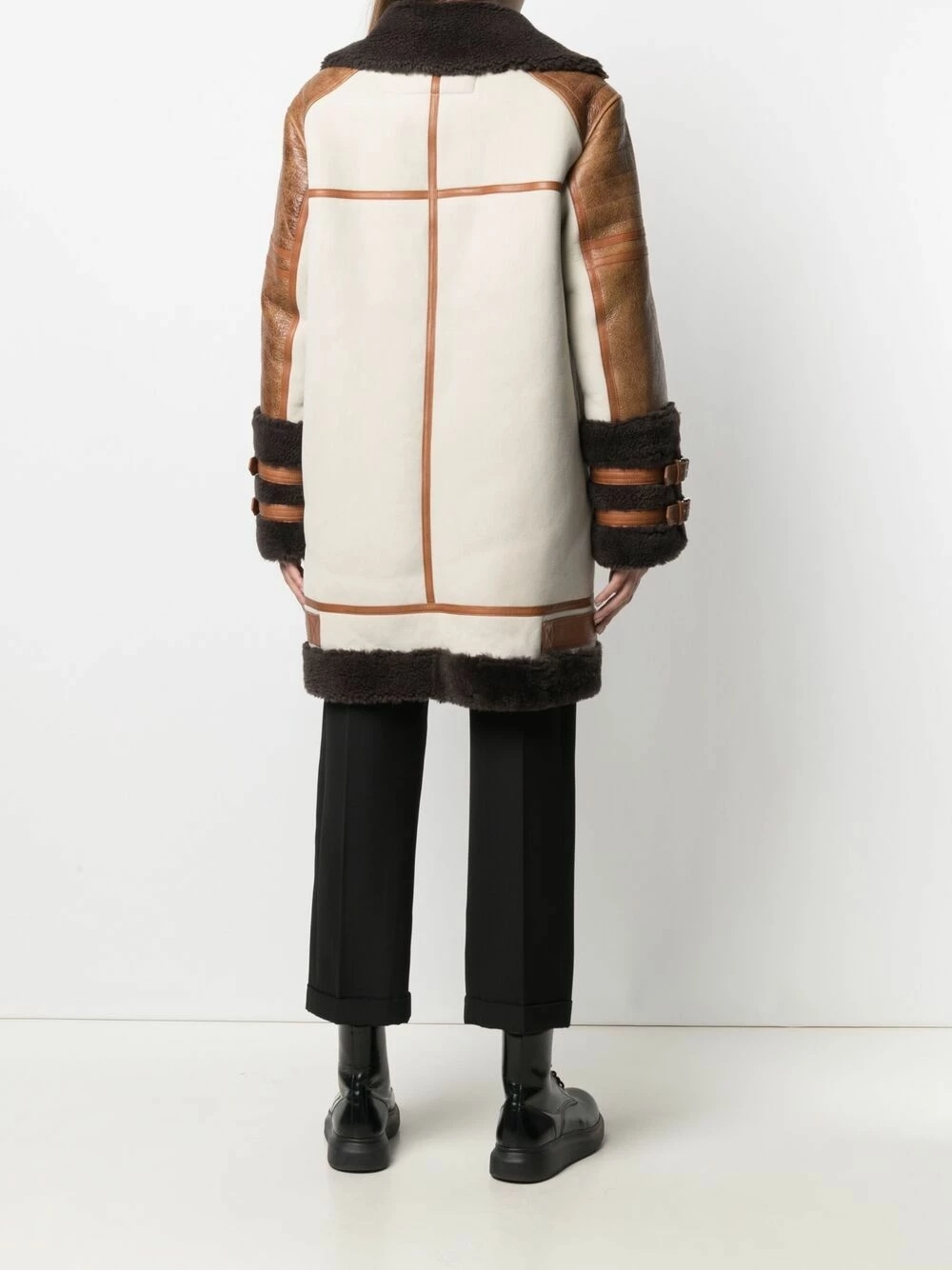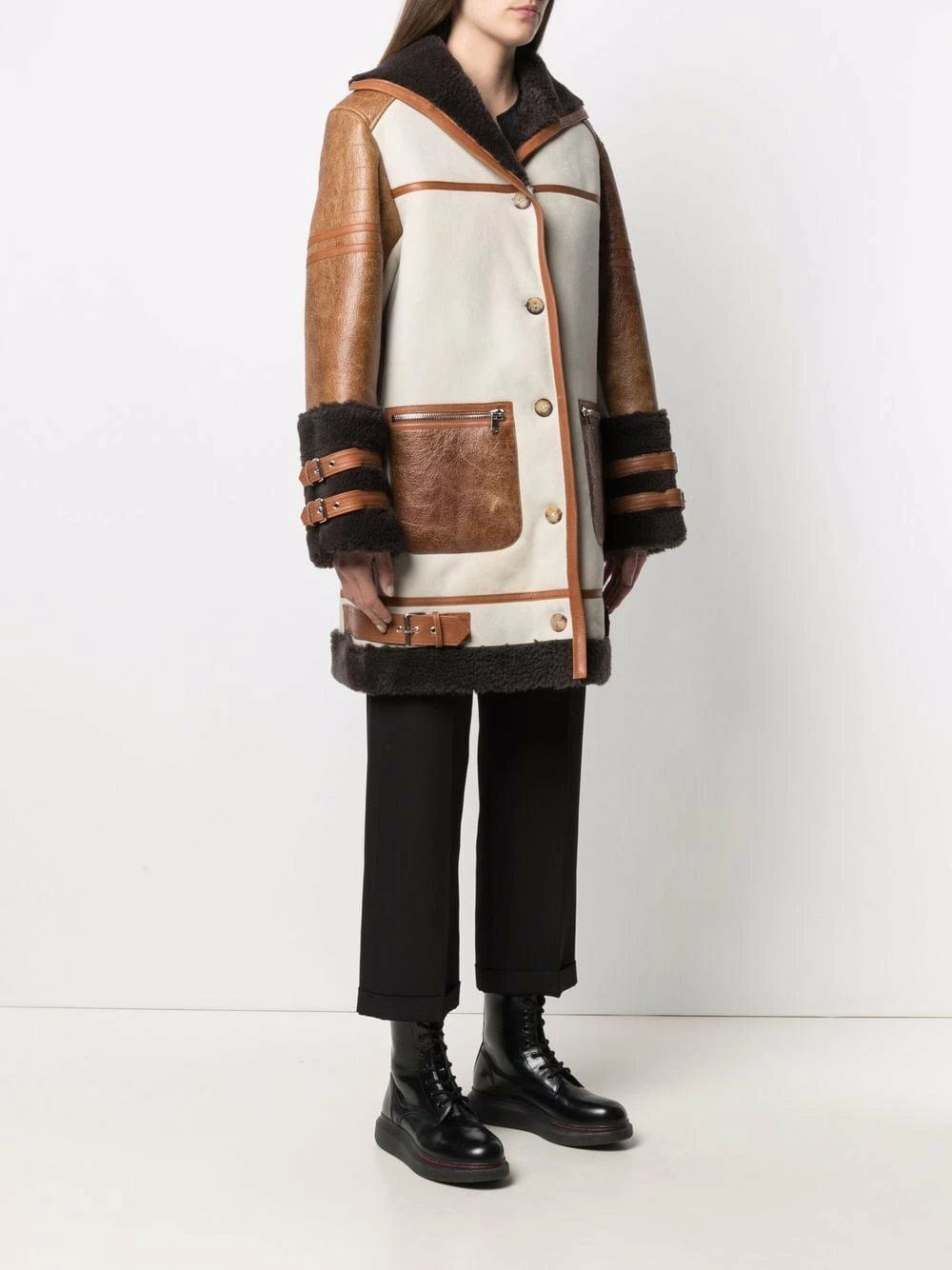 Fend off any potential winter chill with this lamb fur and leather coat from Alexander McQueen. Finishing above the knee, the button-front design boasts cracked-effect panels and soft fur trims. Never feel the cold again.