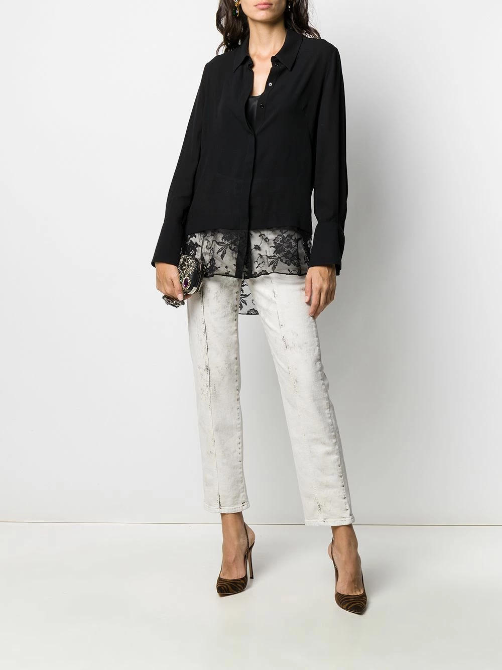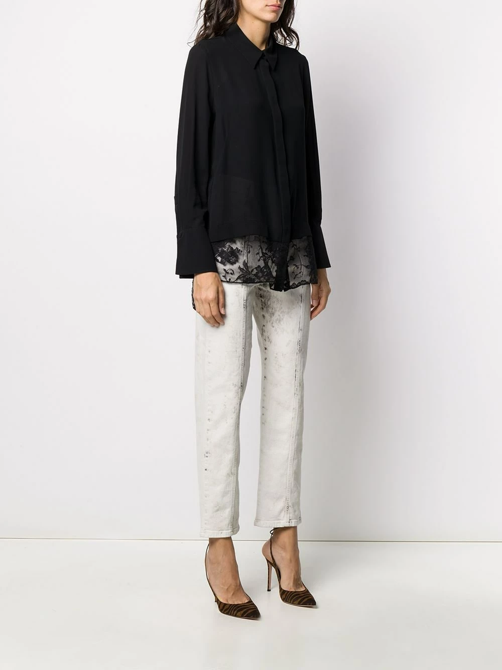 Do you feel romance in the air? No? Let this Alexander McQueen black contrast panel shirt make you feel dreamy and beautiful. Fall in love with your clothes again. Made from silk, featuring a classic collar, long sleeves and a contrasting panel.