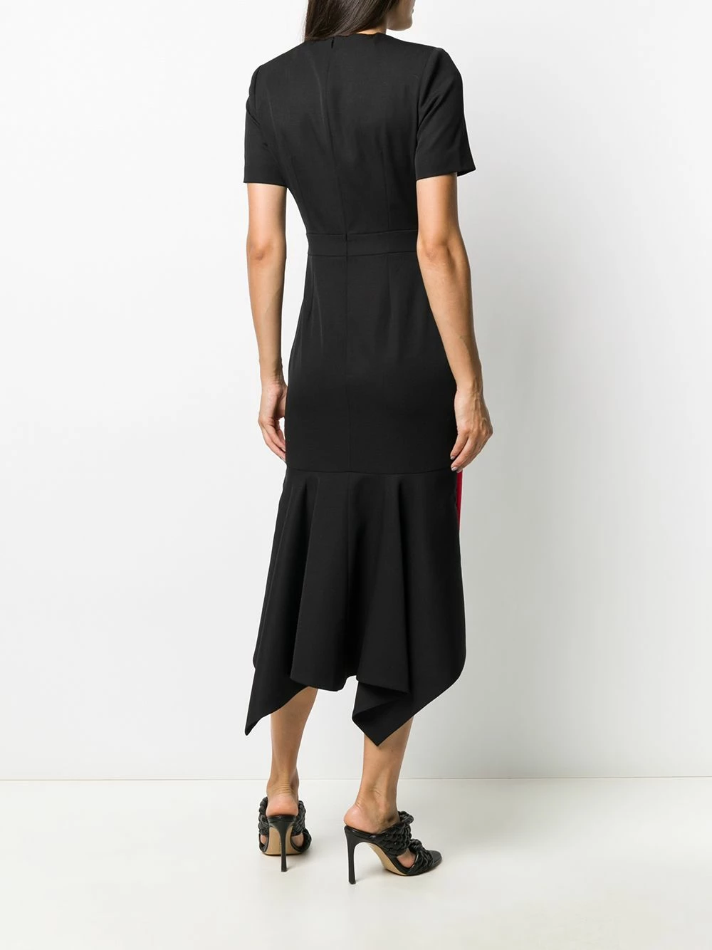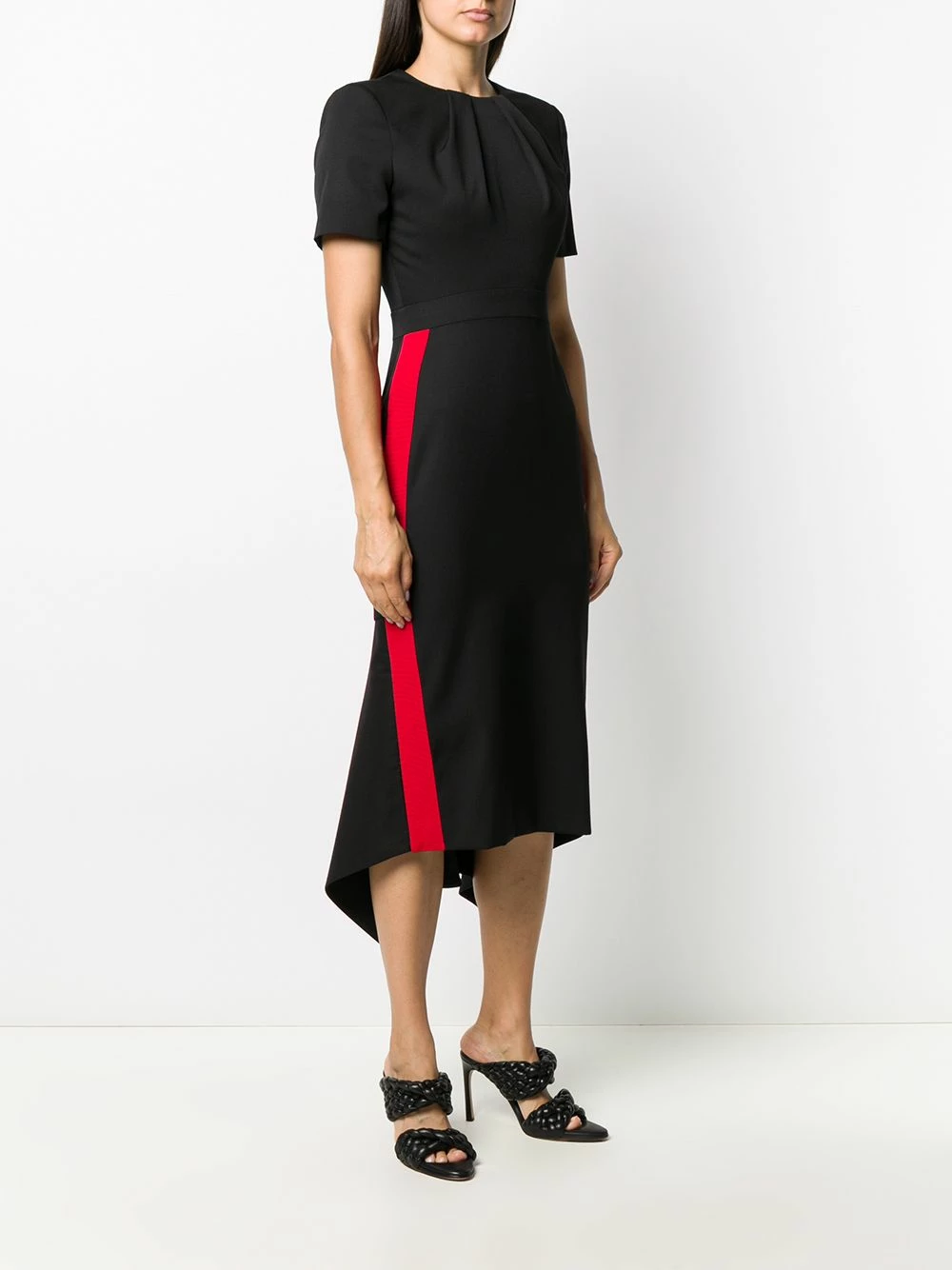 If you’re looking to make an entrance, then this Alexander McQueen cocktail dress is your weapon of choice. Crafted from black silk blend, it has crimson red virgin wool stripe appliqués on the sides and a lovely draped back-panel on the skirt. Walk into that party like you own it, because in this dress you certainly do.