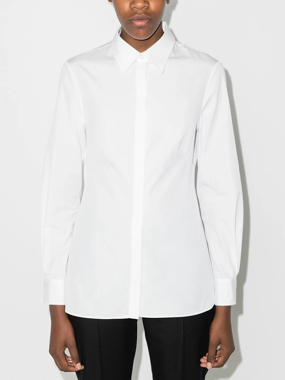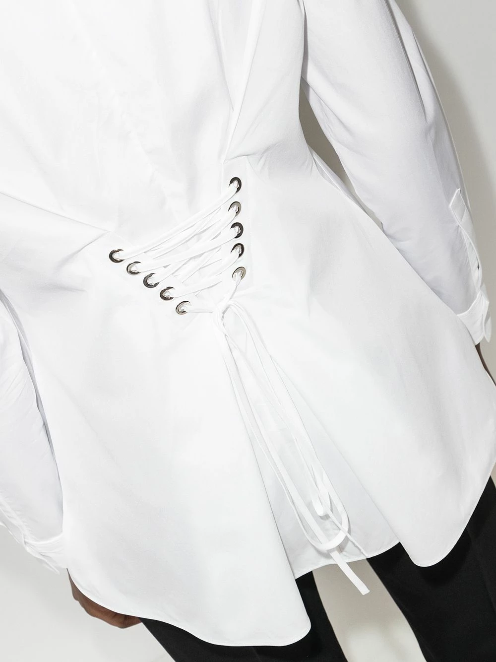 Simple silhouettes receive an upgrade as a result of Alexander McQueen’s attention to the quality of fabrics and construction. Constructed from cotton, this plain shirt is detailed with an elegant and romantic rear lace-up detail, reflecting the brand’s DNA.Â