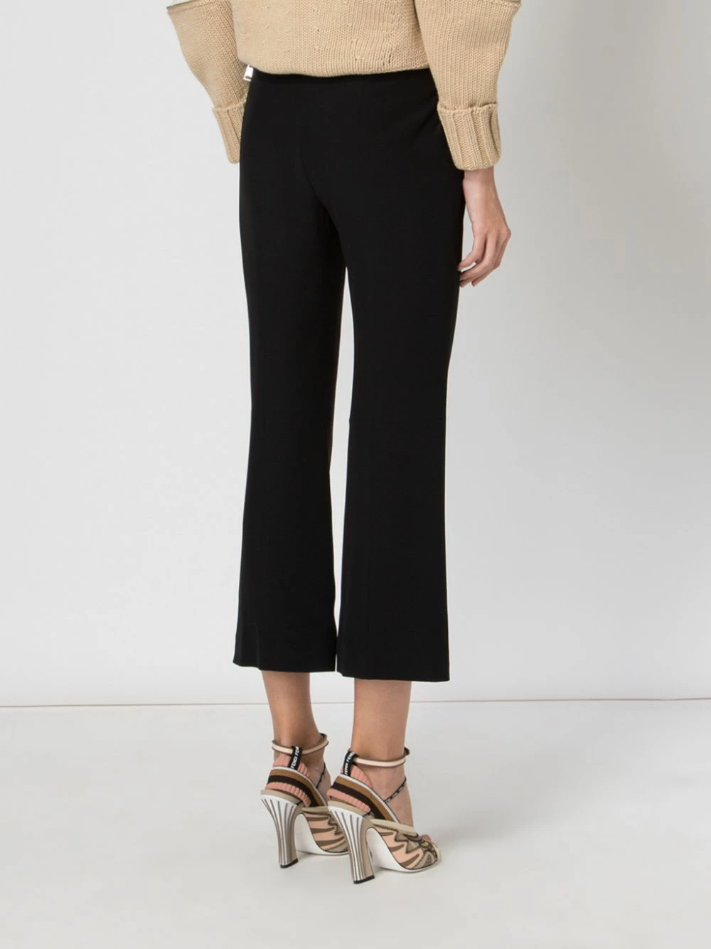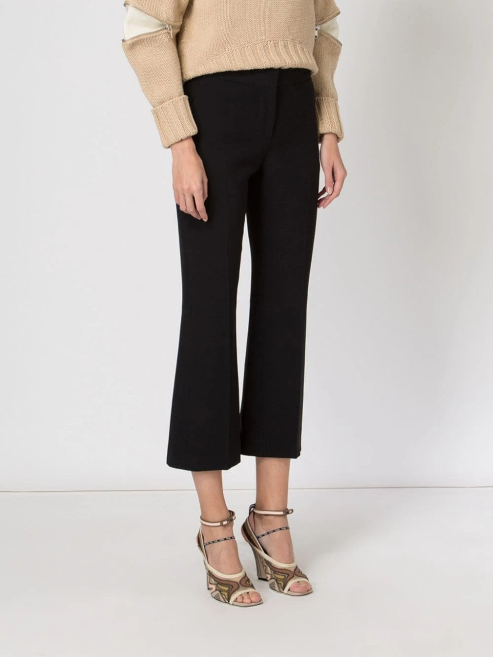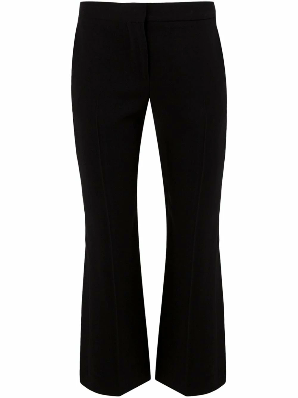 Home to the edgy and mysteriously alluring, Alexander McQueen is an encounter of finesse and duskiness. Presenting these black cropped flared trousers for workday formal with a flair (or flare). Featuring a mid rise, a concealed front fastening, side slit pockets, a flared style and a cropped length.