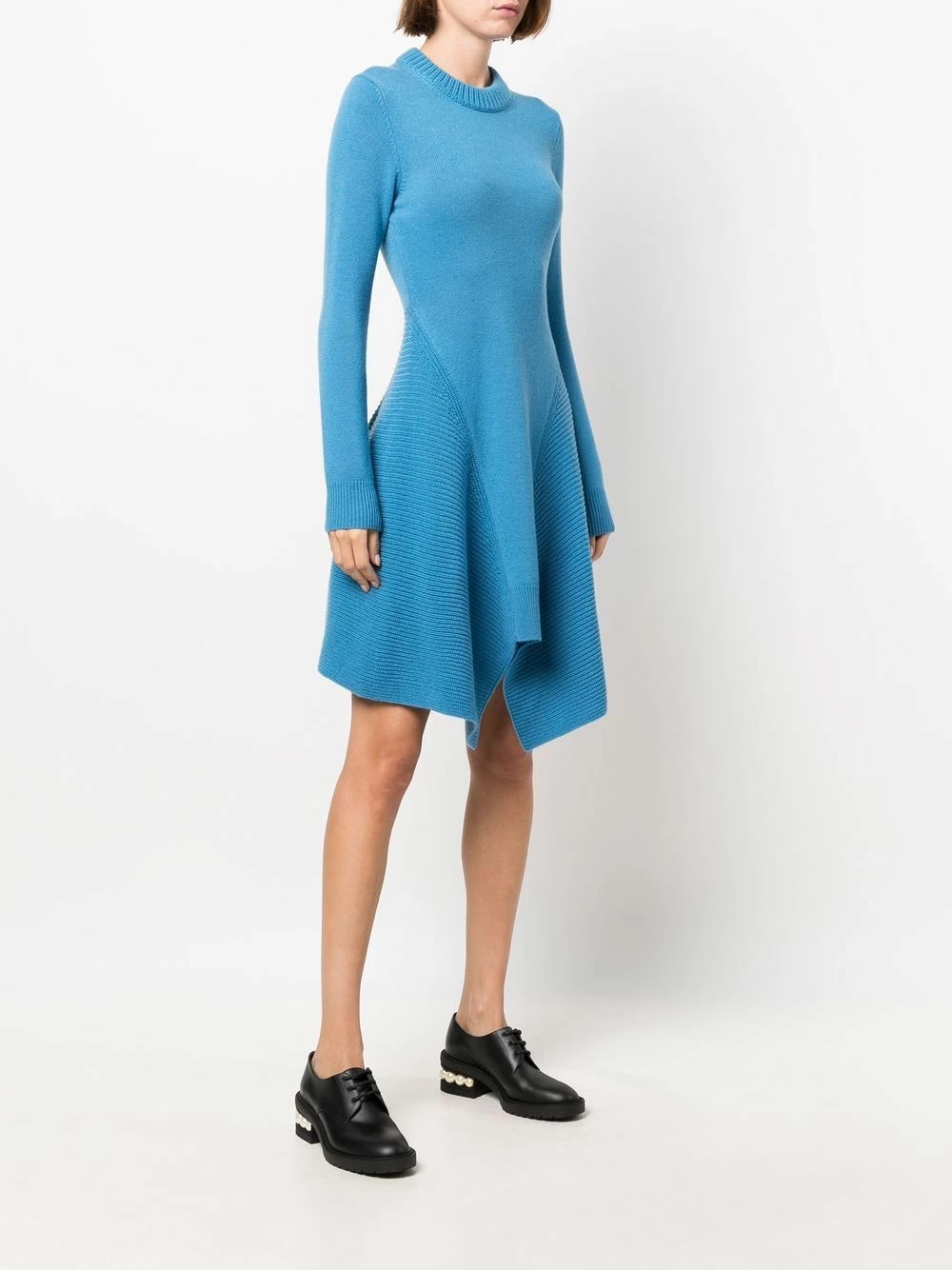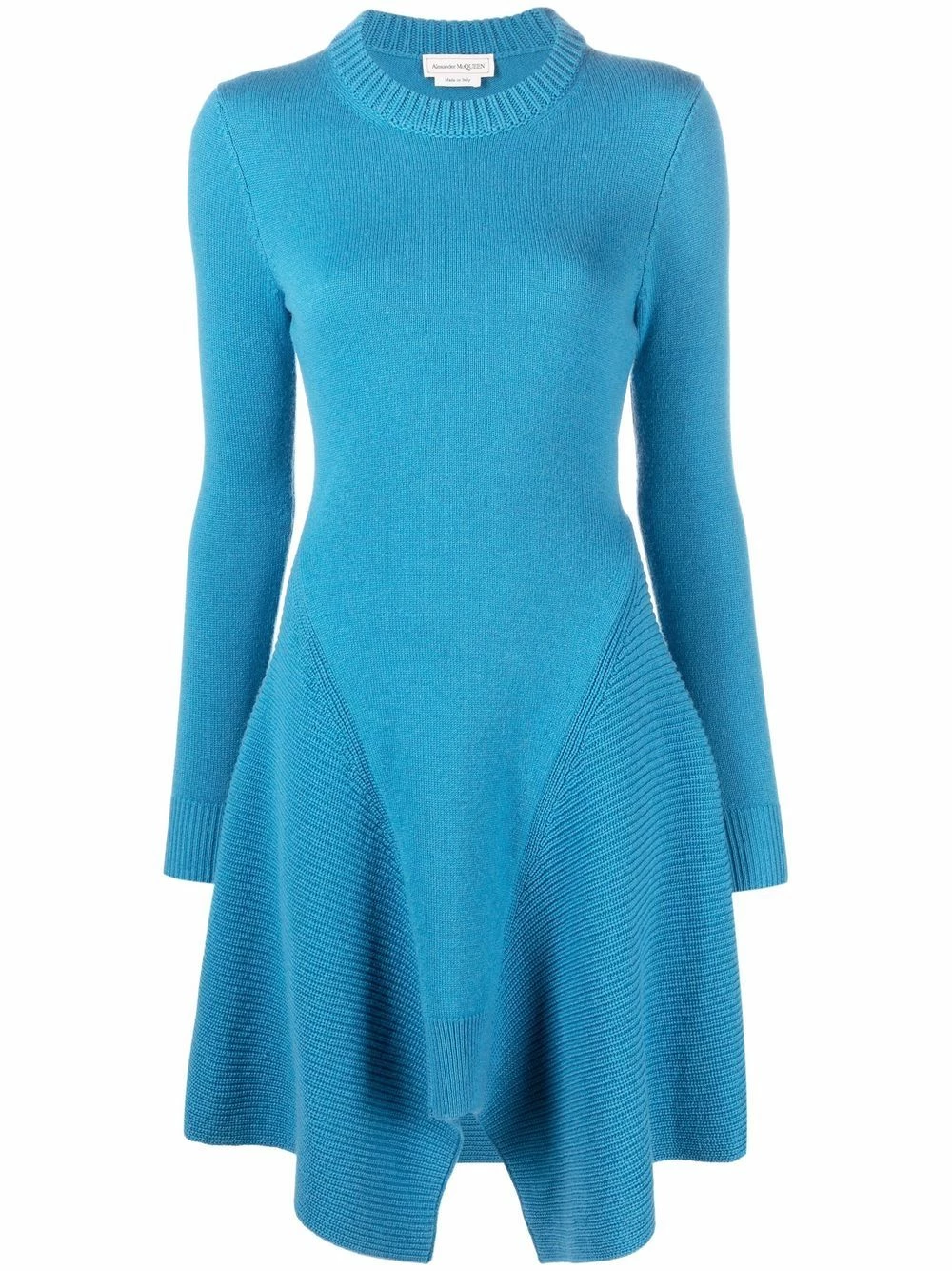 Alexander McQueen’s knitwear prowess is demonstrated in the flared chunky-knit silhouette of this dress. Cut from pure cashmere in a vibrant blue hue, this piece is finished with a contemporary slit at the hem.