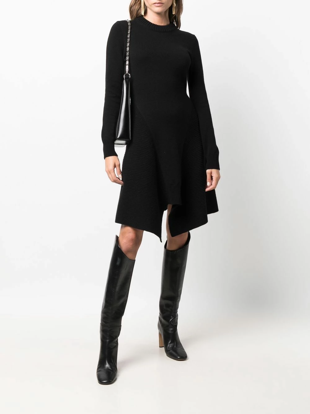 Alexander McQueen’s knitwear prowess is demonstrated in the flared chunky-knit silhouette of this dress. Cut from pure cashmere in a black hue, this piece is finished with a contemporary slit at the hem.