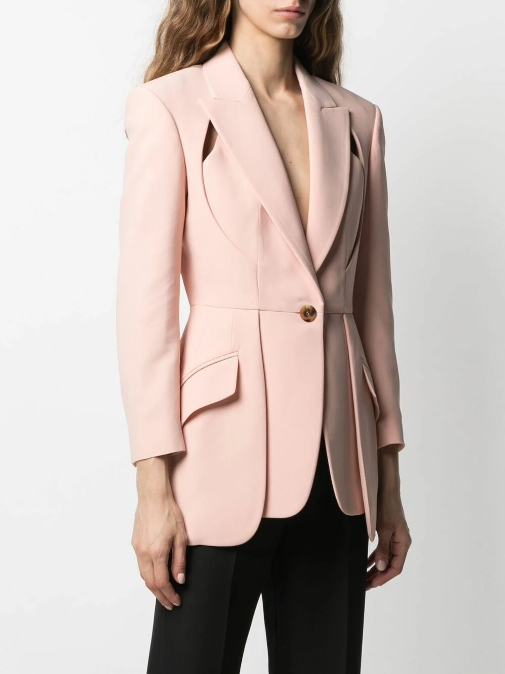 Workwear doesn’t have to be old-fashioned. This single-breasted blazer from Alexander McQueen has cut-out details, giving any office outfit an edge. You mean business.