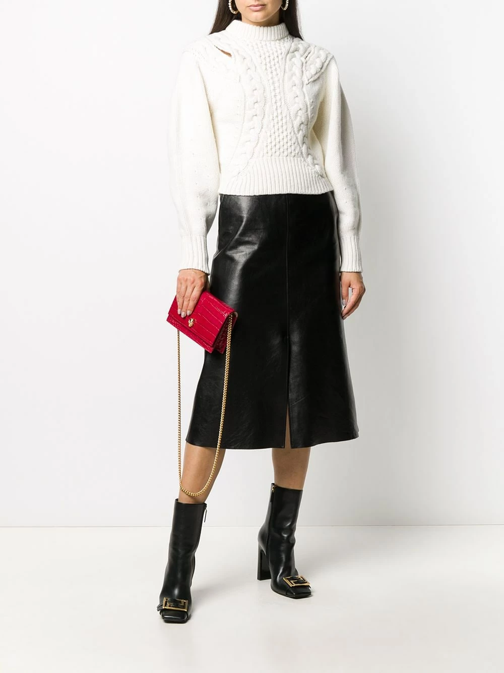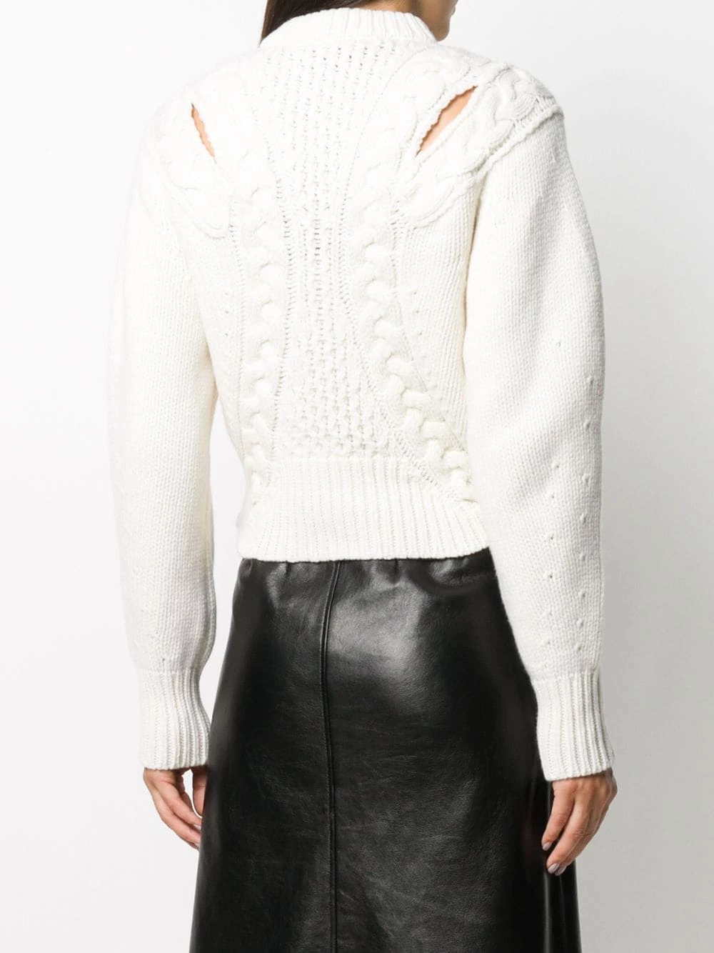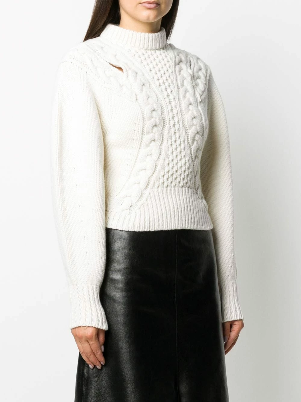 Cold days ahead? Master chilly mornings with this cut-out cable knit jumper from Alexander McQueen. Winter blues are a thing of the past.