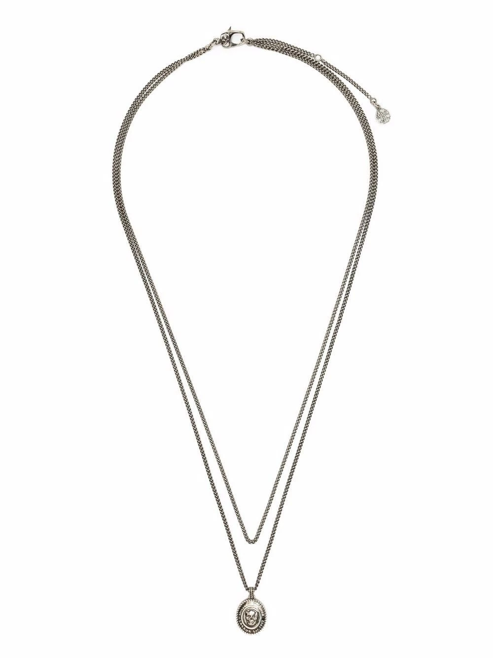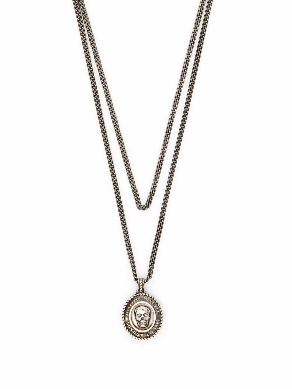 Chains this AW21 are a leading trend in the Alexander McQueen collection. Constructed from silver-tone brass, this necklace is detailed with a double-layer chain and finished with the instantly recognizable skull motif set on a medallion.Â