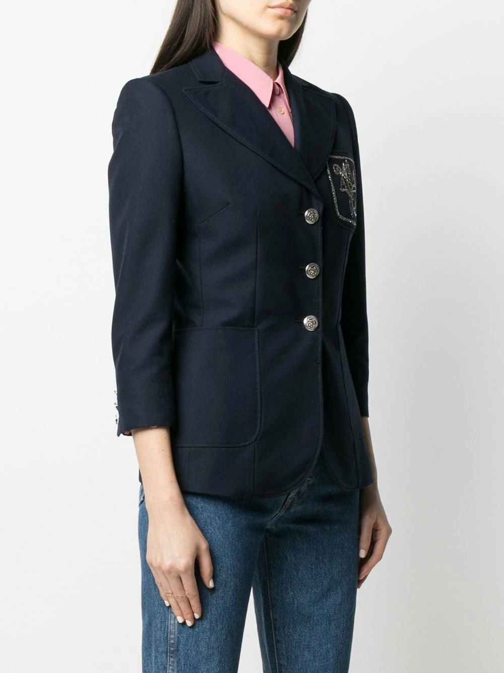 A classic with a twist. Crafted in cotton, this timeless navy blazer from Alexander McQueen is given a decadent update with its embellished logo patch to the front. The key is in the detail.Â