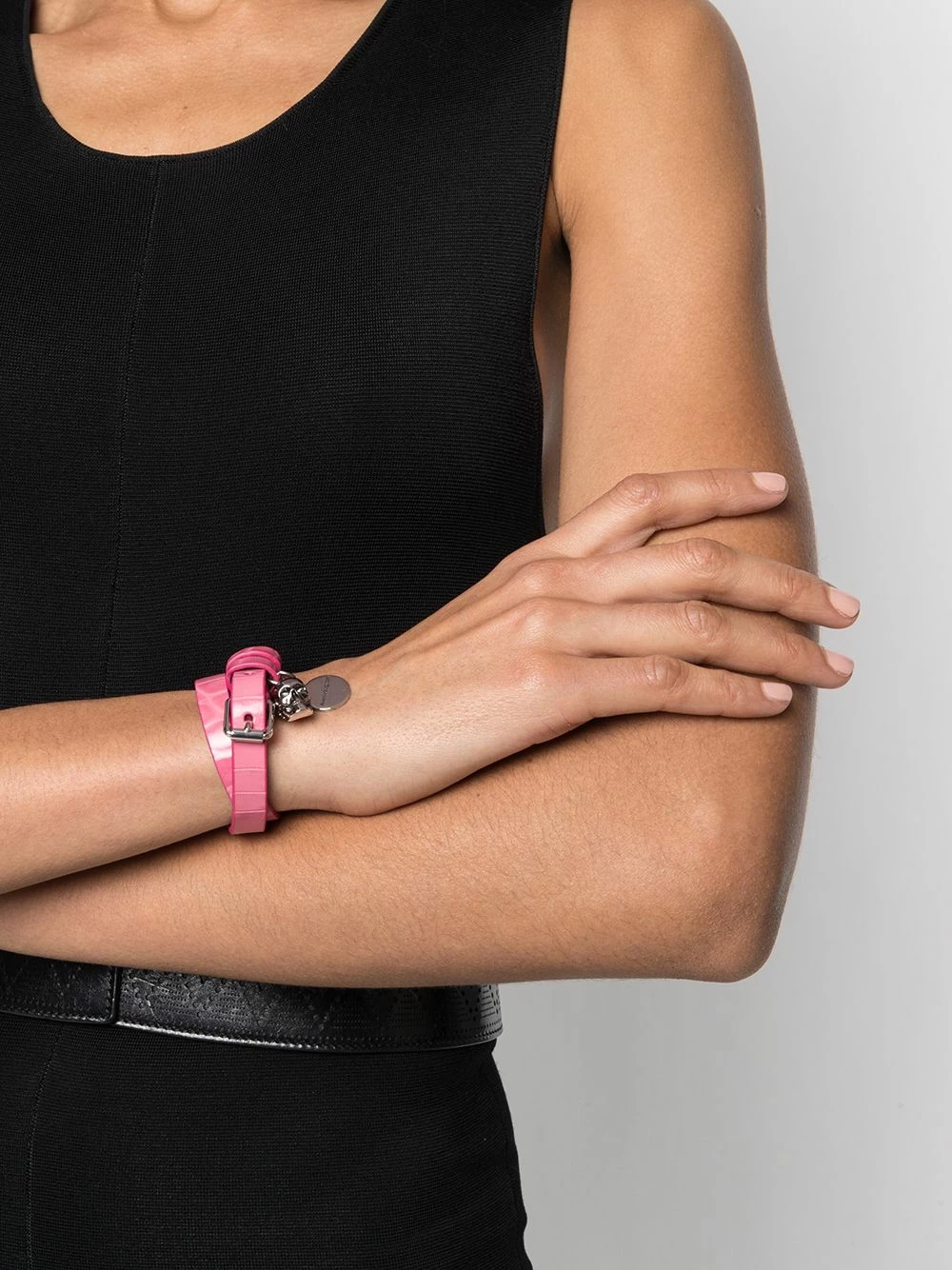 The most instantly recognisable motif of all time? Alexander McQueen’s skull design. Constructed from embossed leather, this wrap bracelet fastens with an adjustable buckle and is detailed with the iconic skull in the form of a charm giving a sprinkle of edginess to everyday looks.Â