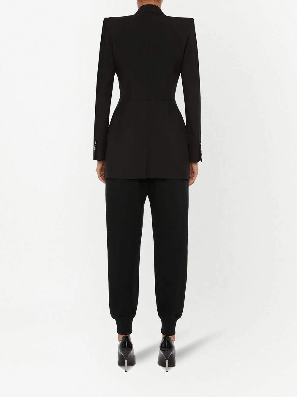 Comfort and style can be easily obtained. Constructed from black cotton, simply throw on these embroidered logo track pants from Alexander McQueen and that’s what you’ll get. All in one go.