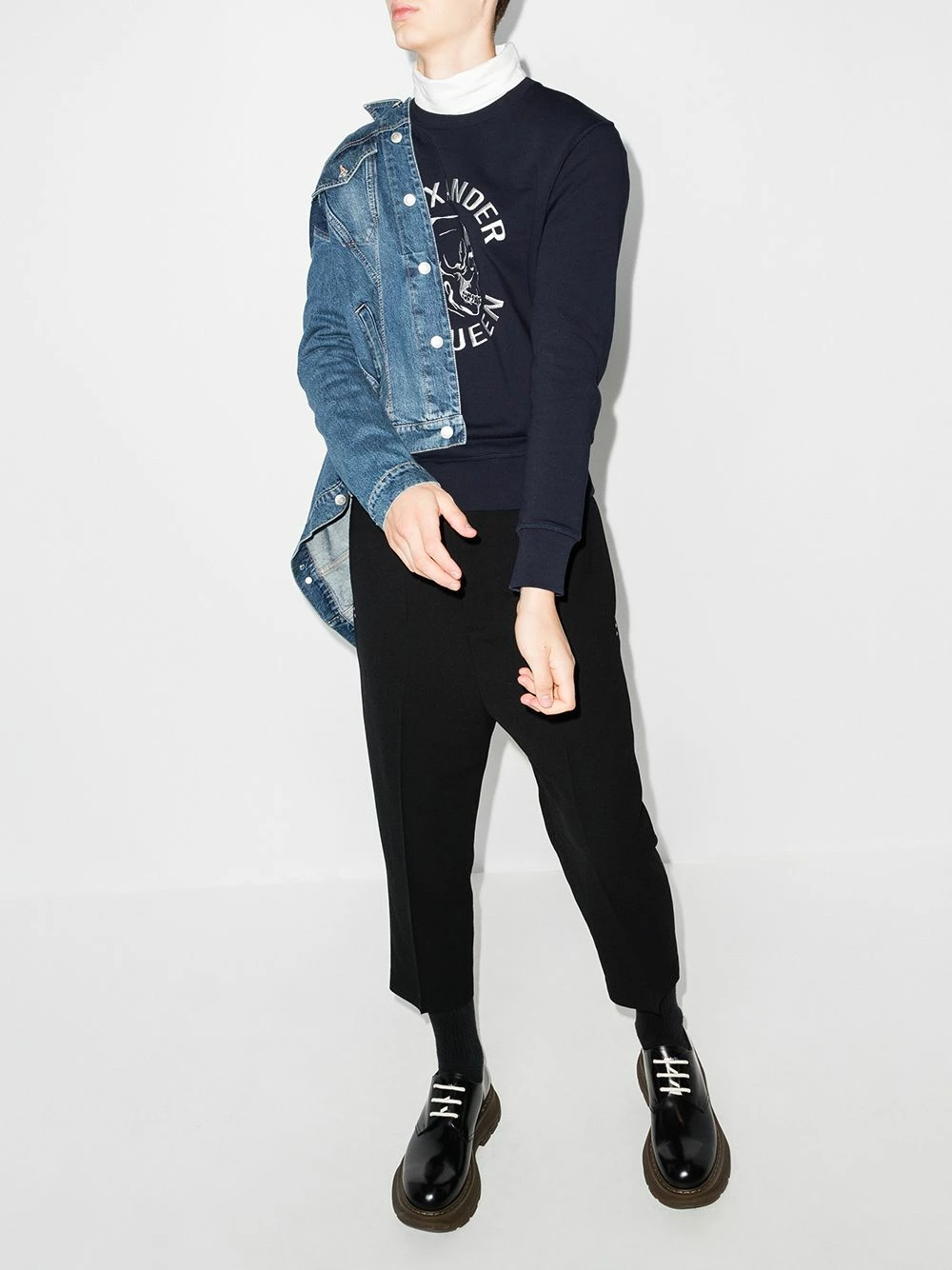 Alexander McQueen delivers an instantly recognisable casual wardrobe staple. Crafted from cotton, this piece is adorned with a designer’s logo at the chest that surrounds an embroidered skull – a recurrent motif throughout the brand’s collections.
