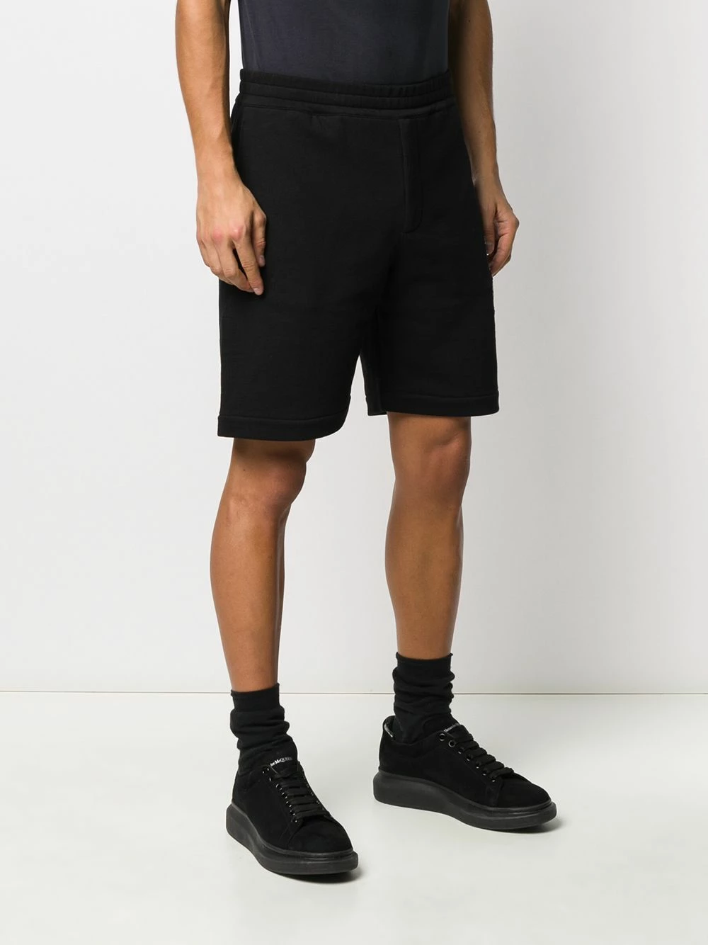 Love to keep it comfortable all the time? Then look no further. Comfy and super stylish, this black cotton embroidered track shorts from Alexander McQueen are an instant upgrade. Simple, but super cool. Featuring an elasticated waistband, embroidered details, front pockets, a turned up hem and a relaxed fit.