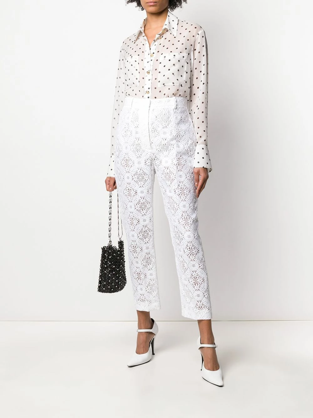 The theme of nature shines through Alexander McQueen’s collections, showcased through the brand’s intricate, ornate embroidery showcased with these floral lace cigarette trousers. Boasting a semi-sheer design, these are perfect for the suggestion of skin, without having to reveal too much,