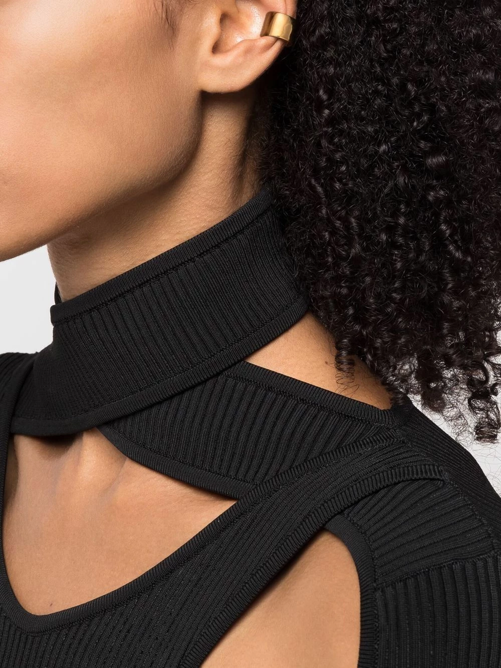 Taking a step back from its signature gothic motifs, this ear cuff from Alexander McQueen’s AW21 offering takes a subdued approach to accessorising. Crafted from polished gold-tone platinum, an engraved logo adorns the inner ring.