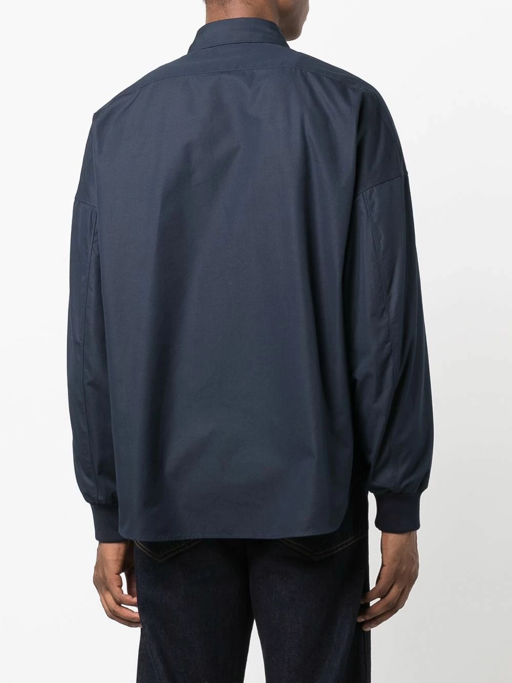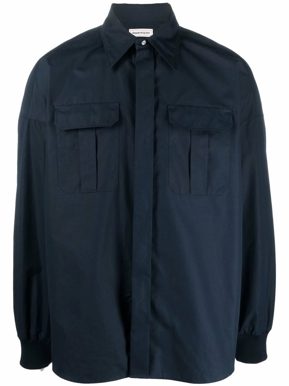 Alexander McQueen’s shirt is an ode to minimalism. Nodding to utilitarian styles, this navy iteration is accented with two flap pockets at the chest and elasticated cuffs.