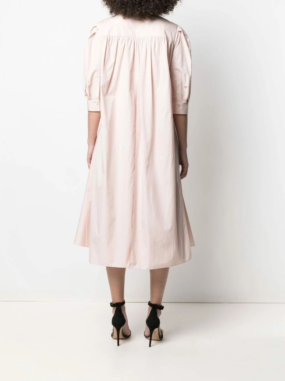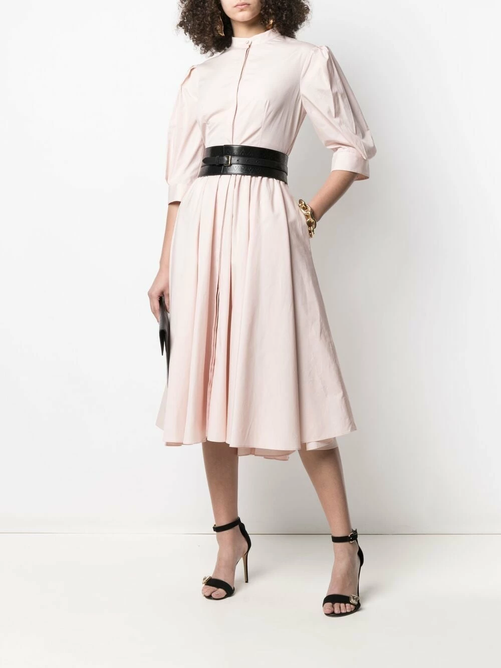 Struggling to consider what to wear today? Alexander McQueen is never a bad idea and after laying eyes on this pink flared midi dress you’ll find it easy to go ahead and button into it yourself. Elegance made effortless.