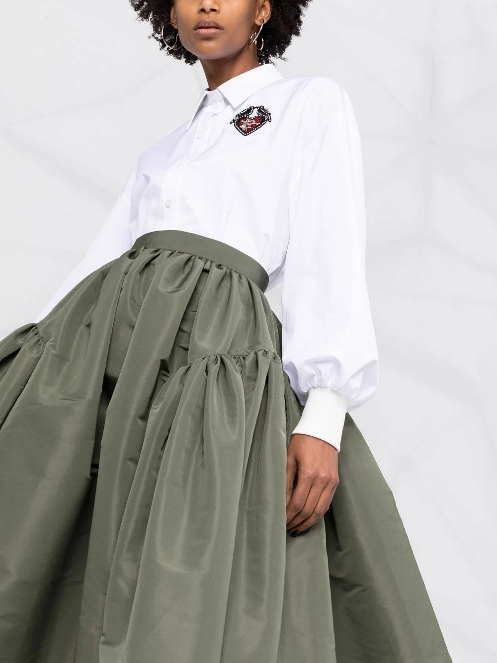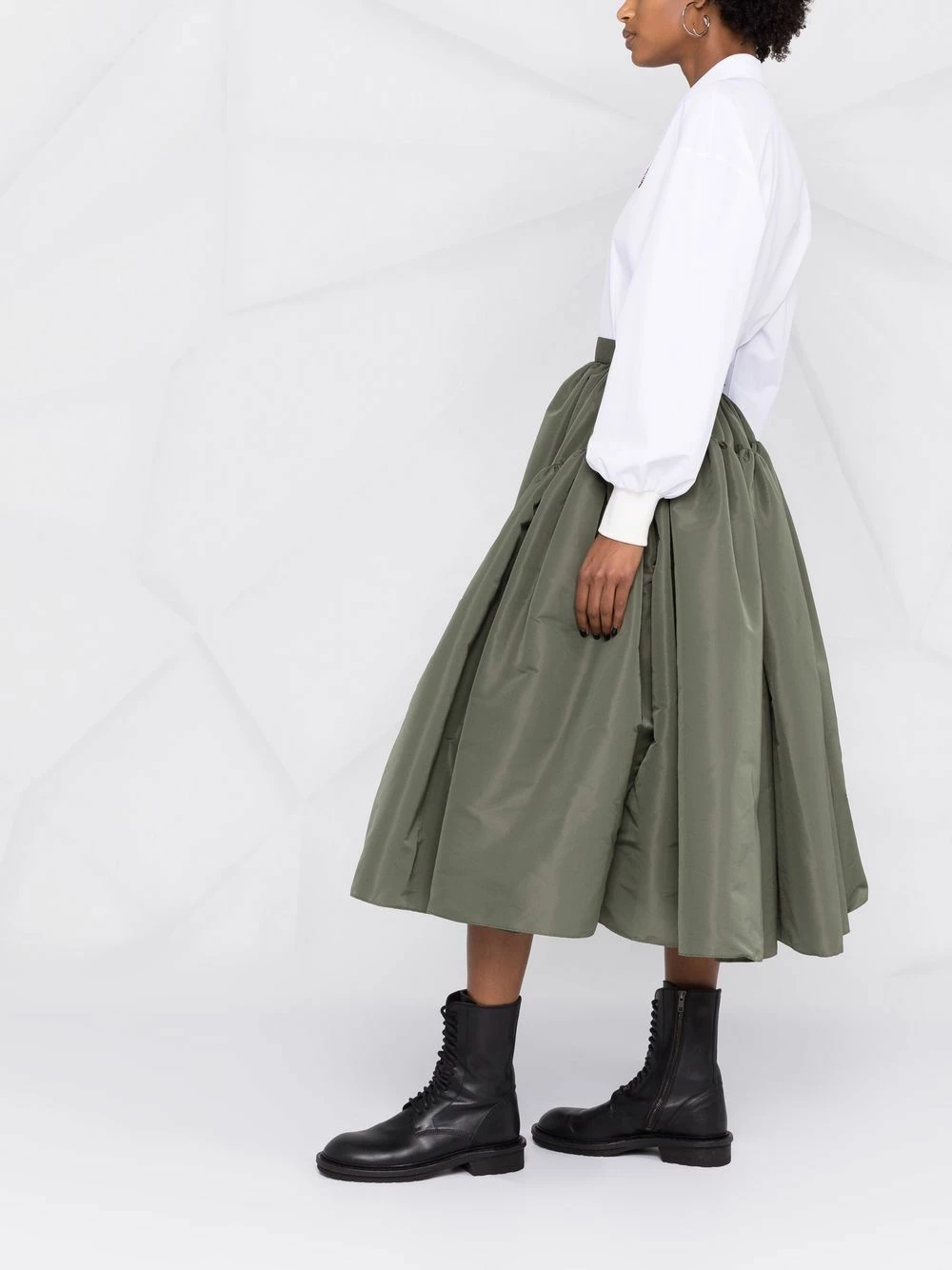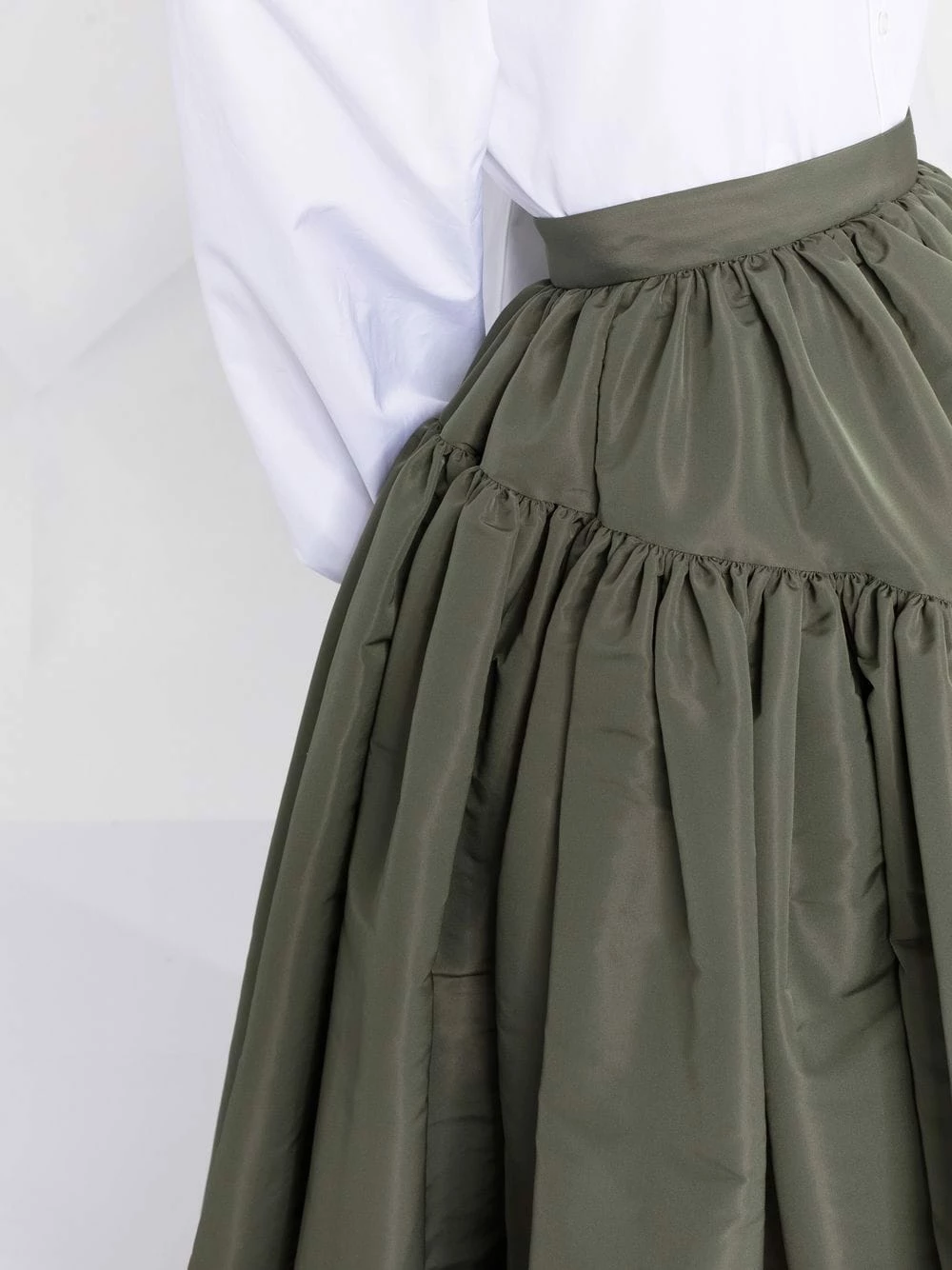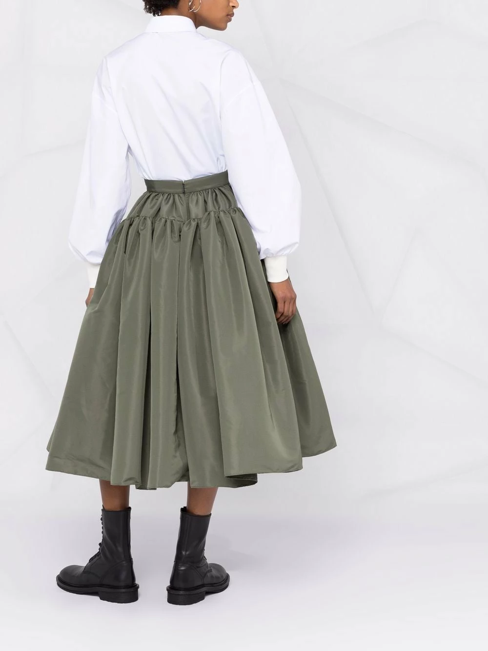 Shown during the label’s Pre-Fall 21 collection, this full skirt from Alexander McQueen takes sculptural silhouettes to a new level. The fitted high-waist serves to accentuate the voluminous shape, with gathered-edge panels exaggerating further.
