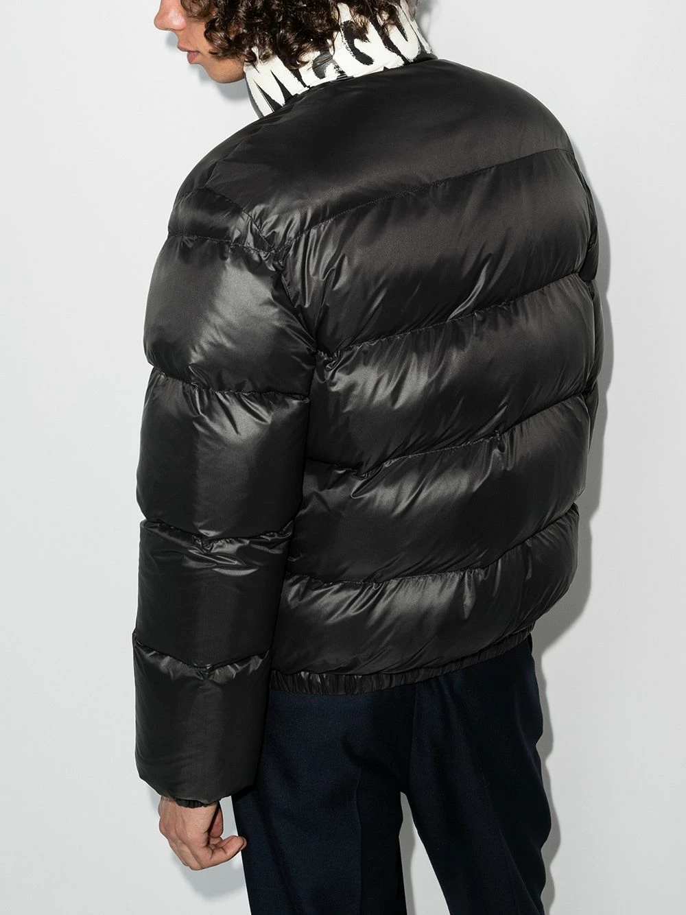 Alexander McQueen founded his namesake label in 1992 and became synonymous with a darkly alluring aesthetic that fed into McQueen’s anarchistic sensibilities. Produced in Italy, this short puffer jacket is detailed with a rear graffiti logo print at the back of the neckline.