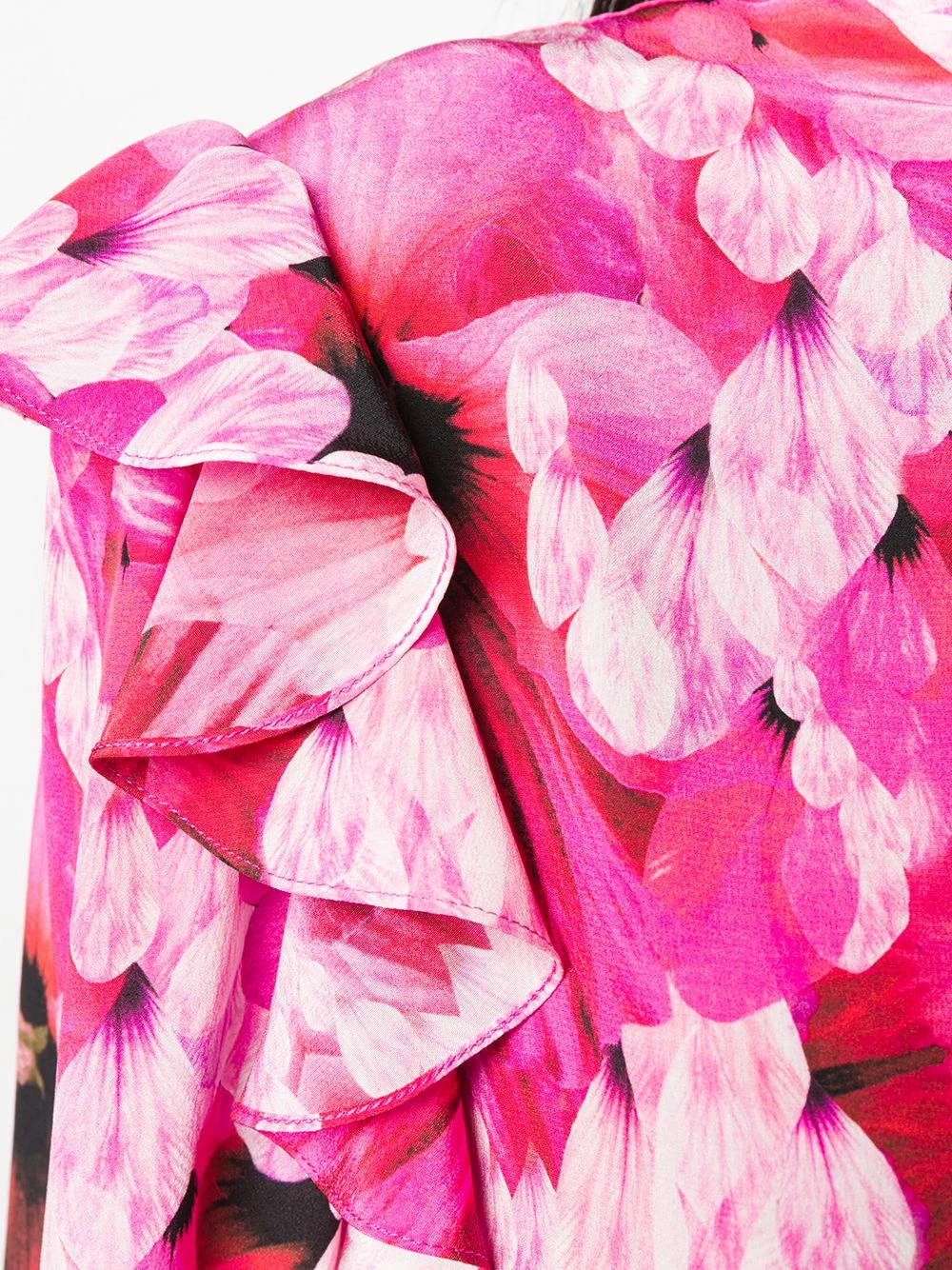 Pretty in pink. Keep it short and sweet in this tonal pink silk hibiscus print flared mini dress from Alexander McQueen. Make it yours. Featuring an all-over print, a short length, a flared skirt, a frill trim, a pussy bow fastening, an a-line style and a partial lining.