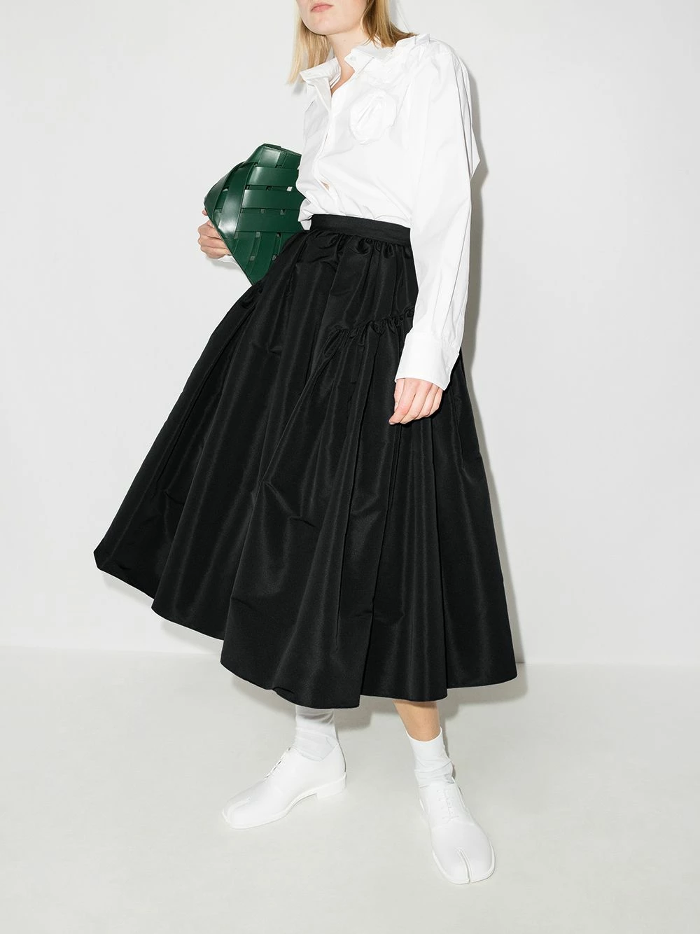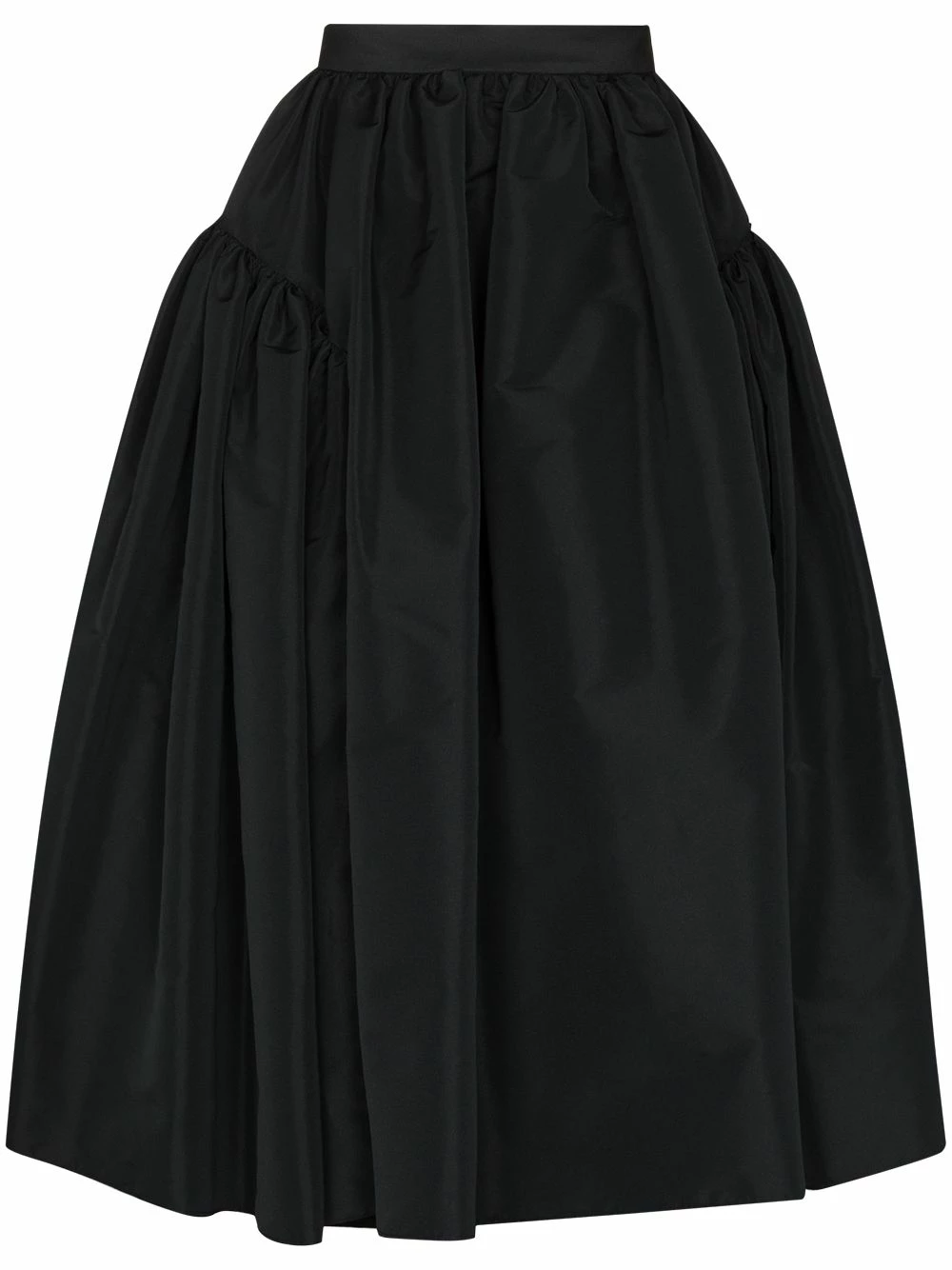 Alexander McQueen keeps it effortlessly simple with this black full midi skirt. Designed with gathered-edge panels, this voluminous piece is refined elegance at its best.