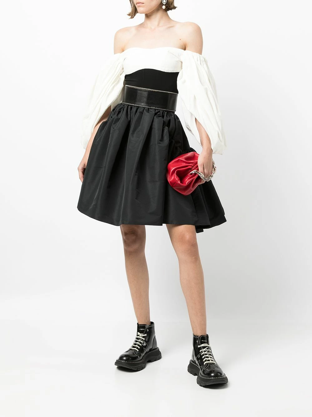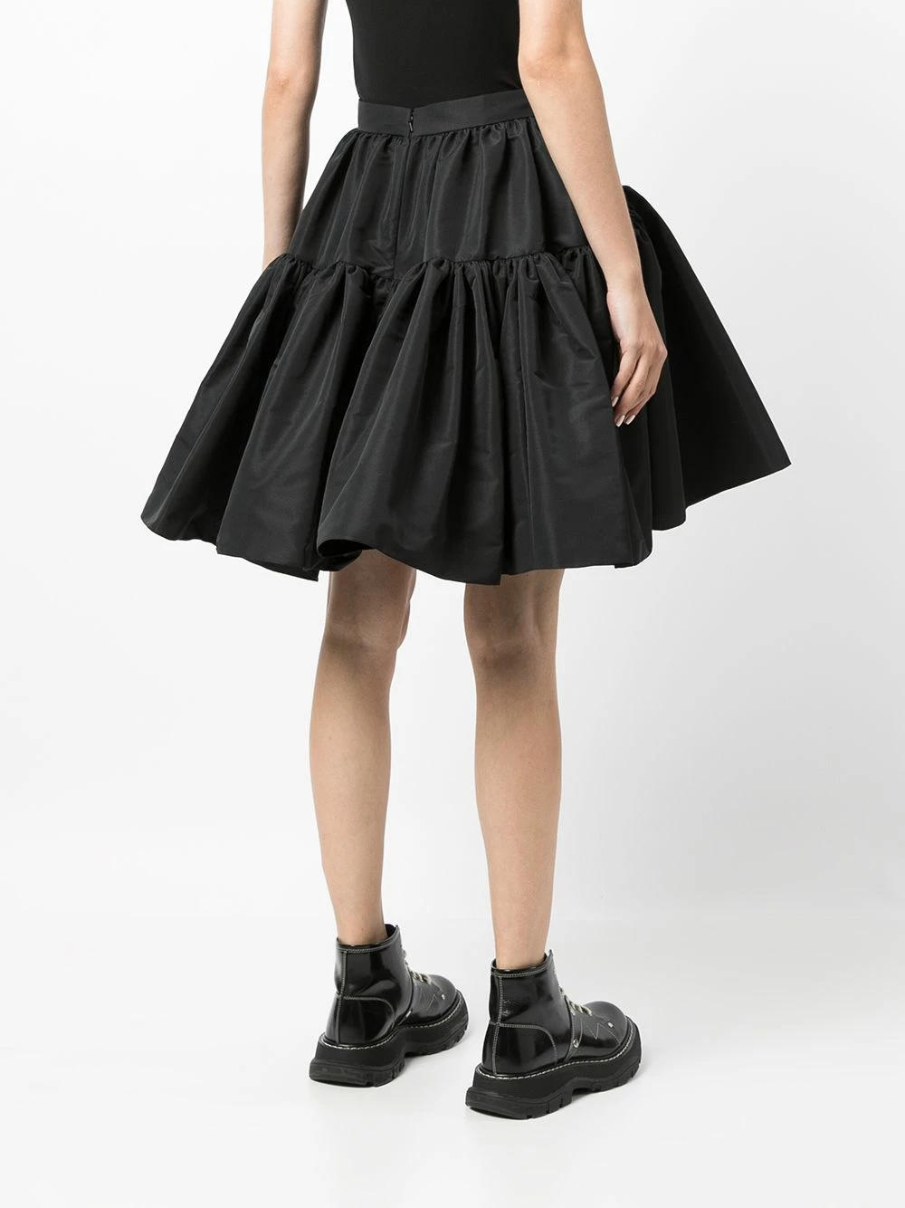 Alexander McQueen’s gothic yet romantic design style is showcased in this skirt, with a high-waisted, A-line silhouette and tonal black colourway.Â