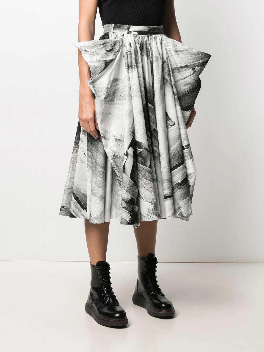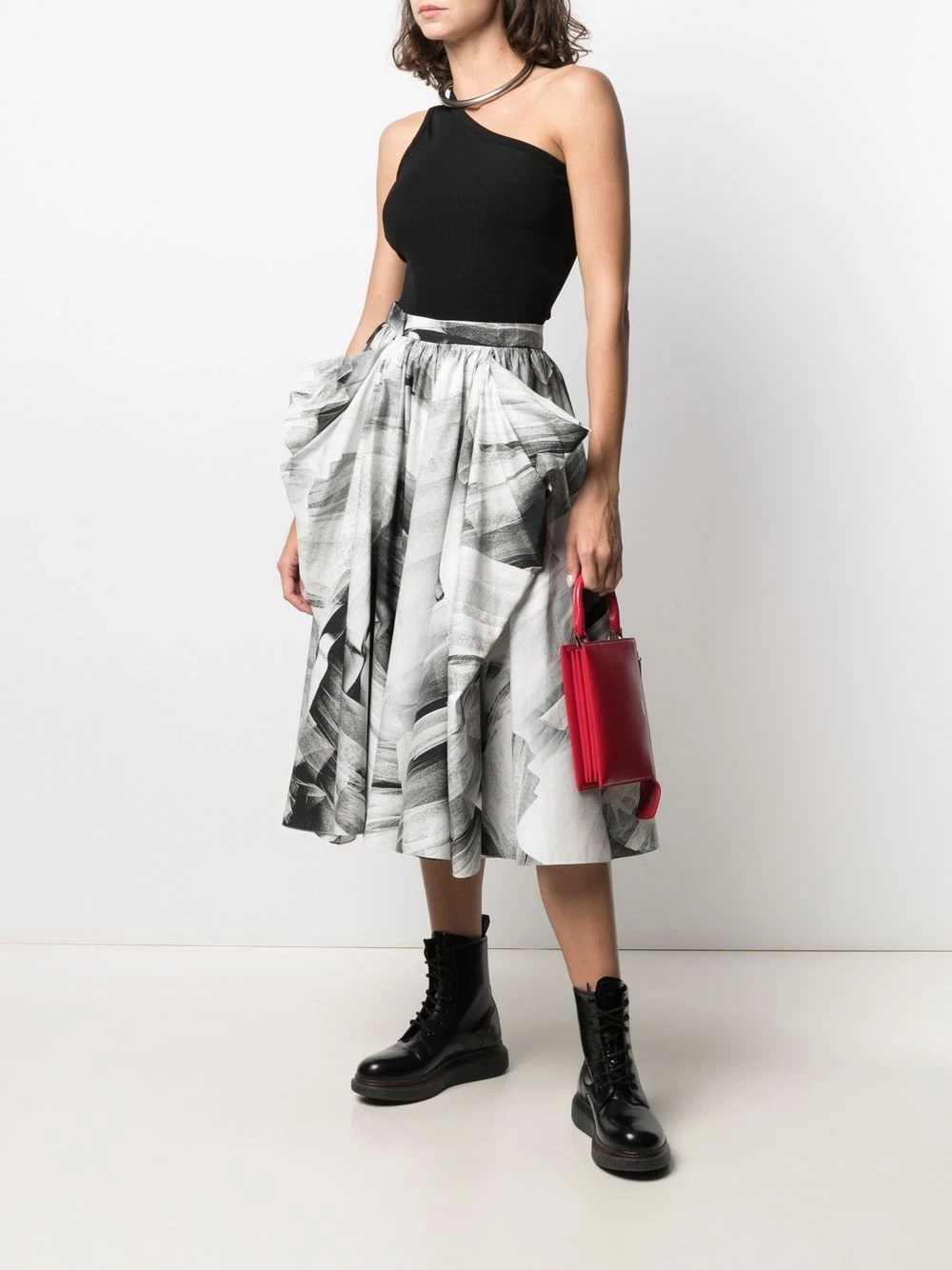 Show off your inner artist with this Alexander McQueen skirt design. Featuring a two-tone abstract pattern print, it’s a stroke of genius. Get ready for compliments.
