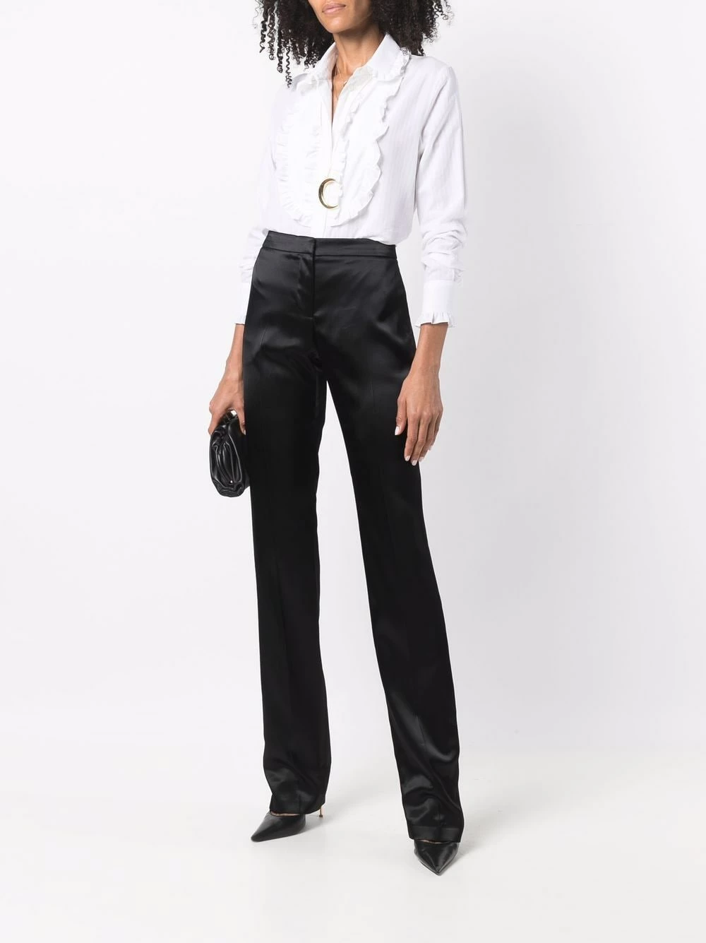 Produced in a slinky fabrication, these silk blend Alexander McQueen trousers showcase impeccable tailoring. Exhibiting a high waist and straight leg, the tonal design is imbued with the brand’s signature dark romance.