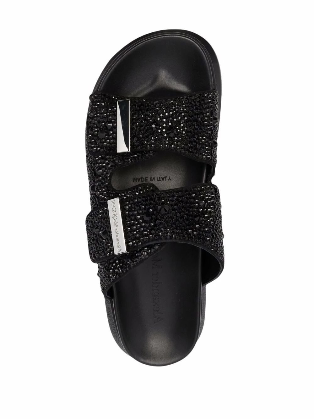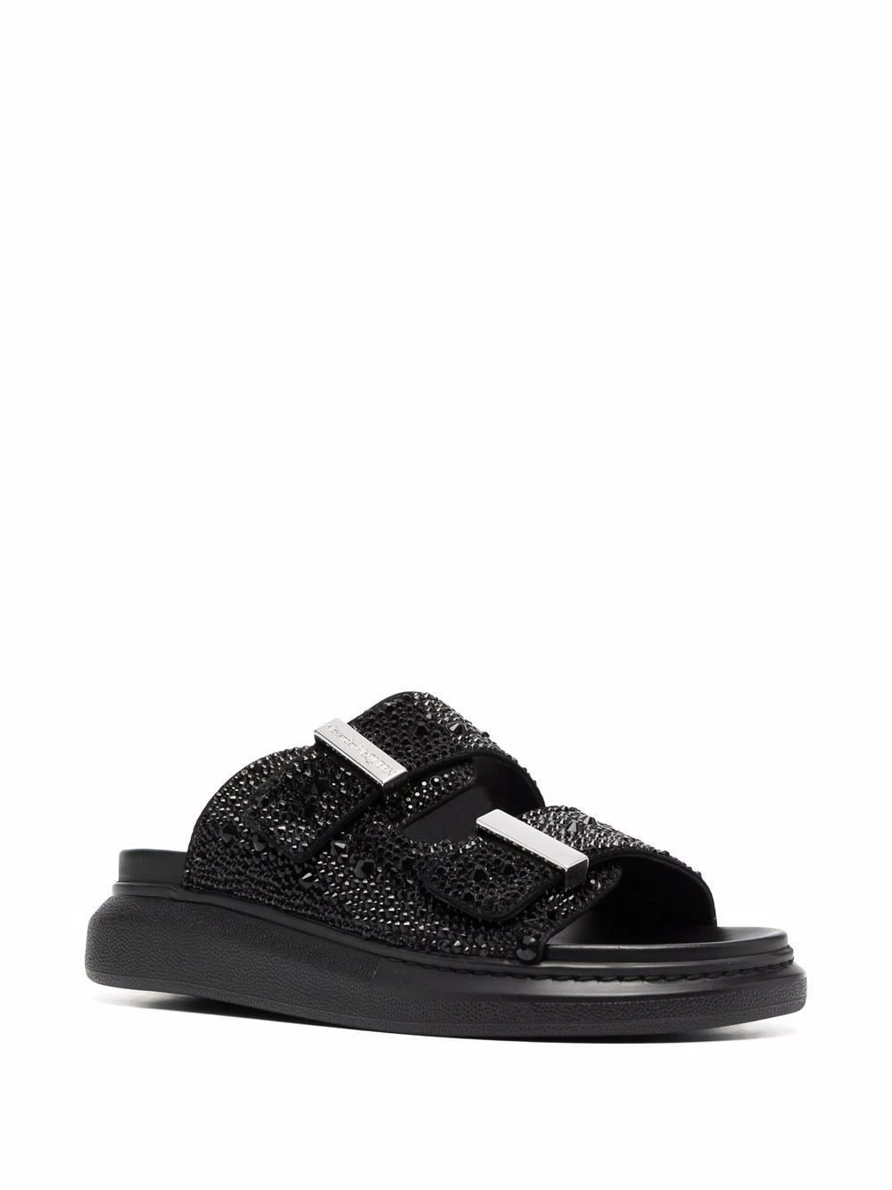 Crystal embellishments add a sparkling effect to these slide sandals from Alexander McQueen. The label’s signature Hybrid model, this calf leather pair are characterised by their oversized buckles and flatform rubber sole.