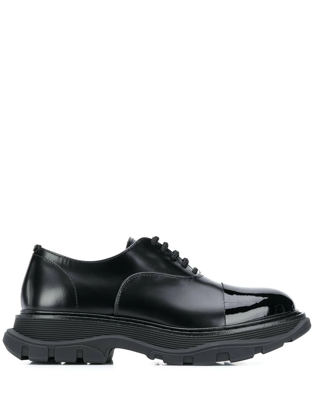 Re-think your office attire with Alexander McQueen’s Hybrid lace-up shoes. Produced from leather, they feature a patent leather toe cap and signature chunky rubber outsole. Your suits have never looked so good.