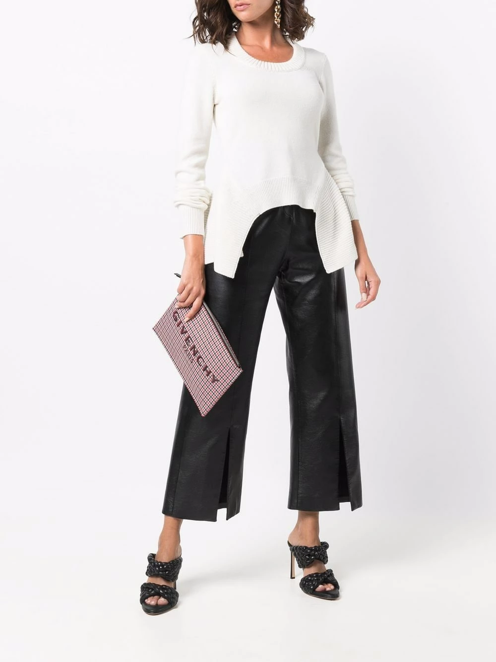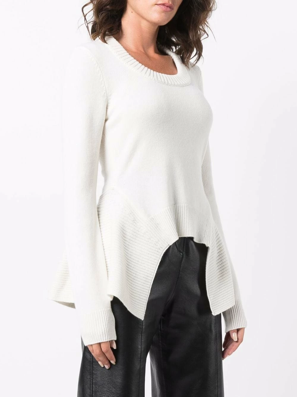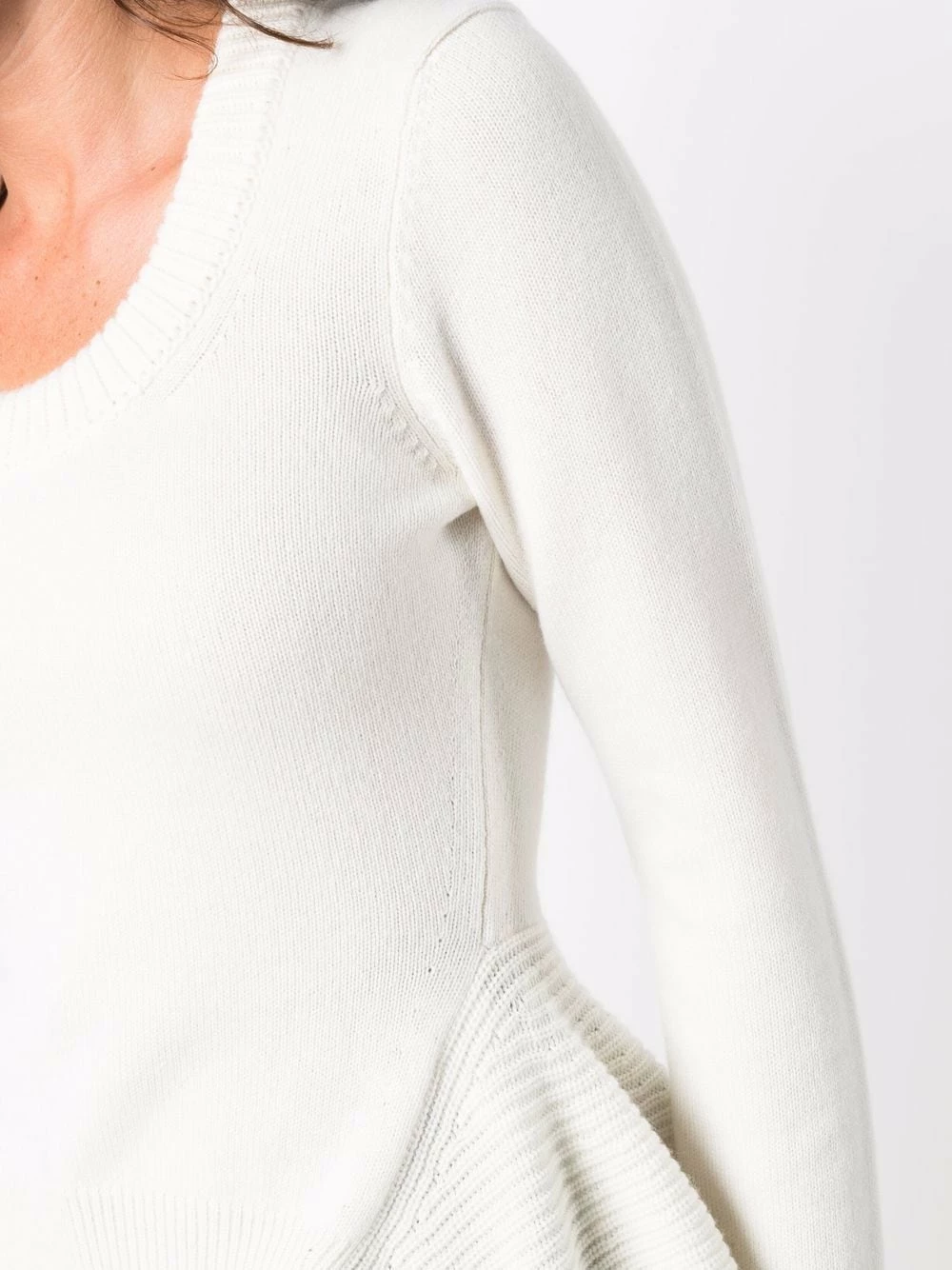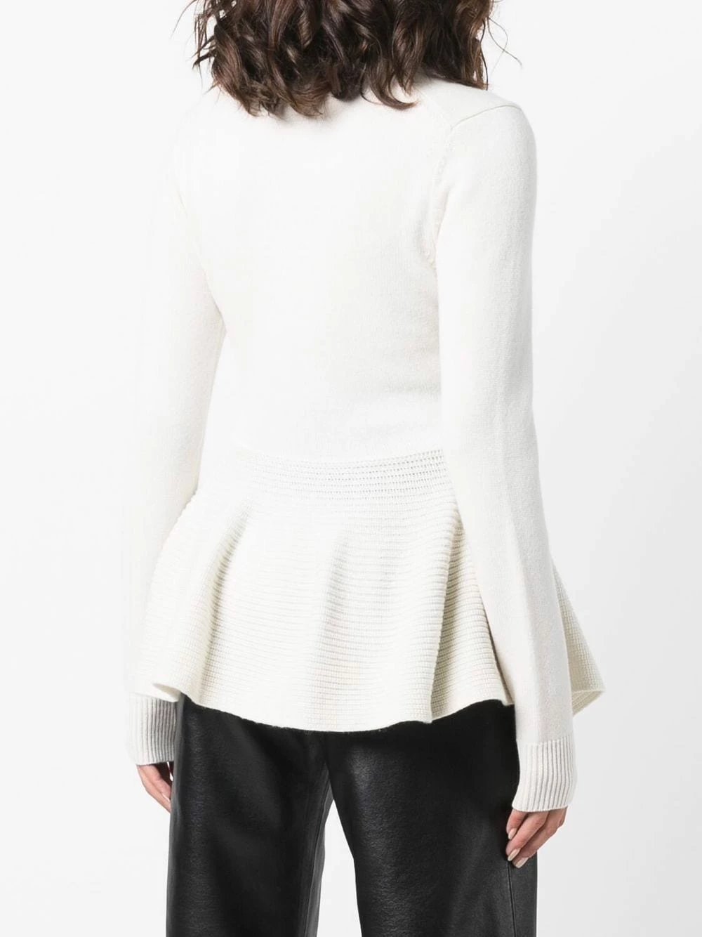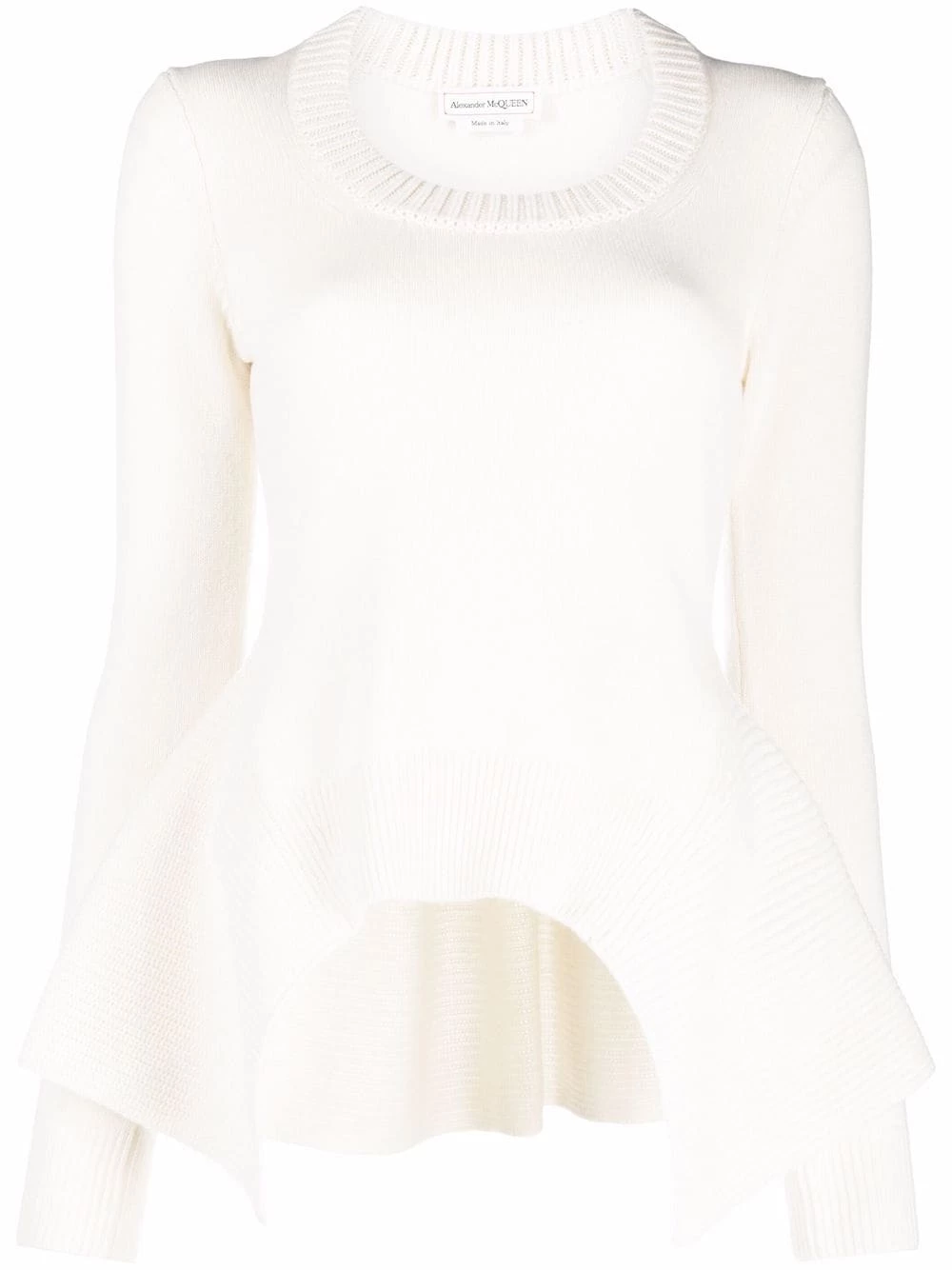 Alexander McQueen reinterprets the classic jumper in this flared iteration, presented as part of their AW21 collection. Its cashmere-made design has been shaped with a peplum hem for a charming look.Â