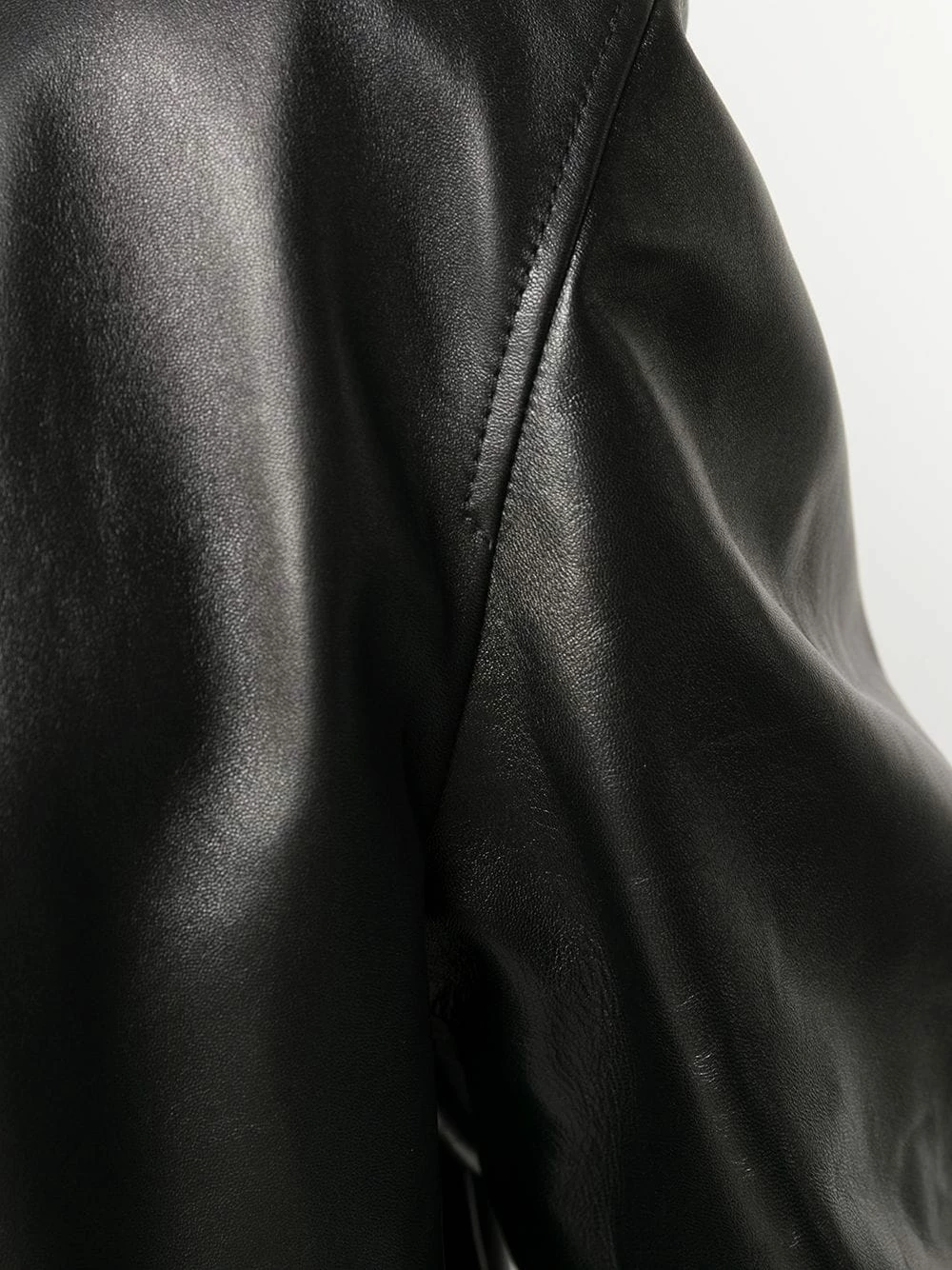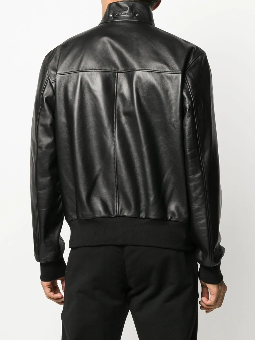 Someone’s looking sleek. Made from black, this lambskin zipped bomber jacket from Alexander McQueen will make you feel like James Dean in Rebel Without a Cause. Trust us, you won’t change your mind. Featuring a front zip fastening, long sleeves, a ribbed hem and cuffs, a straight hem, a high snap fastening collar, two front snap pockets, a check lining and a contrasting red lettering logo at the collar.