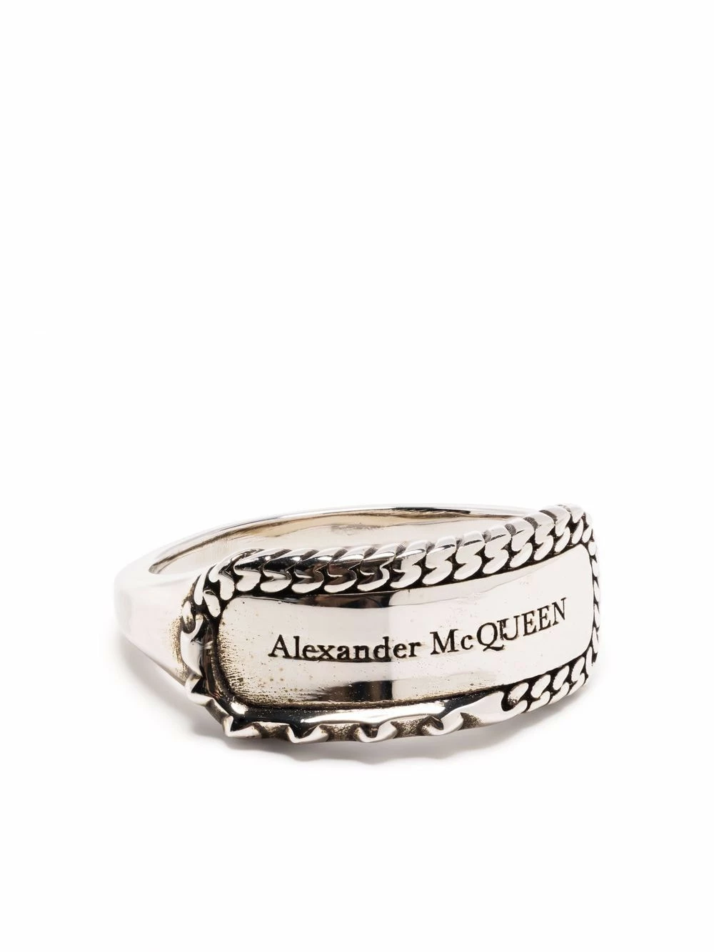 Alexander McQueen logo engraved ring