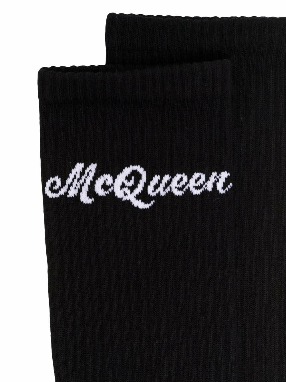 Key elements of McQueen’s aesthetic include Roman Gothic and Victorian-inspired pieces – like dark colours and thick fabrics. In a full-black colour and crafted from cotton, these logo knitted socks embed the brand’s iconic style.