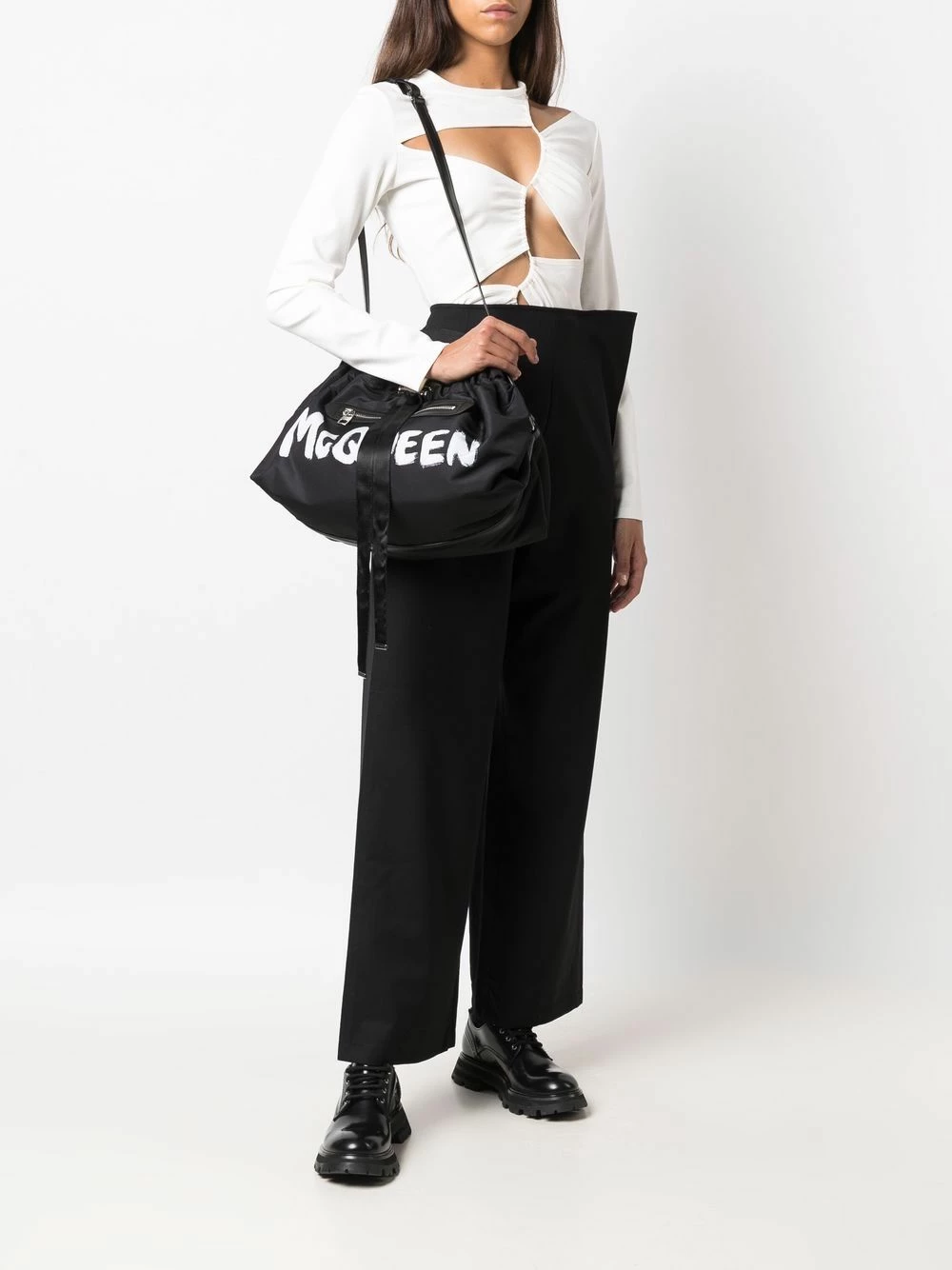 Alexander McQueen logo-print drawstring-waist shoulder bag