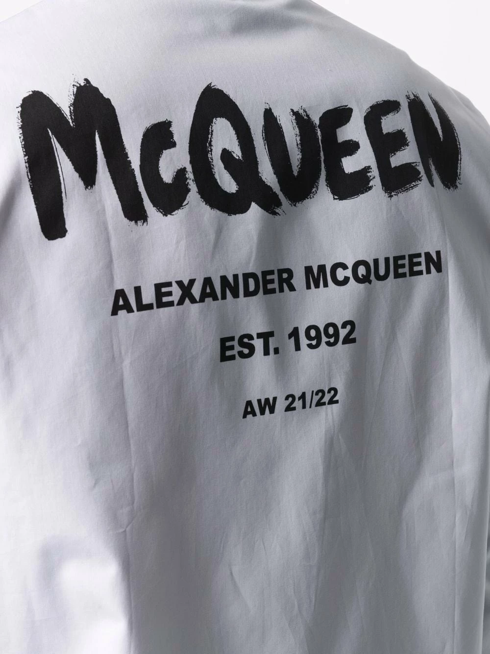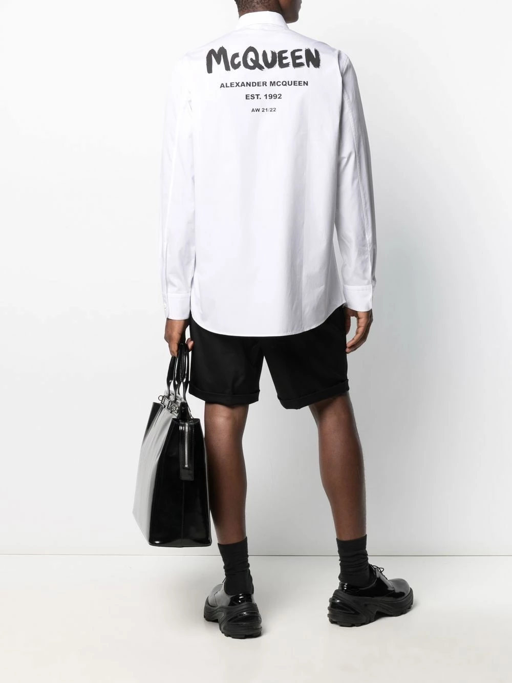 A button-up white shirt might not be considered special at first glance, that is until Alexander McQueen enters the picture. Printed towards the rear with a black logo, this formal look lets it be known you’re all about precise tailoring. Smart choice.