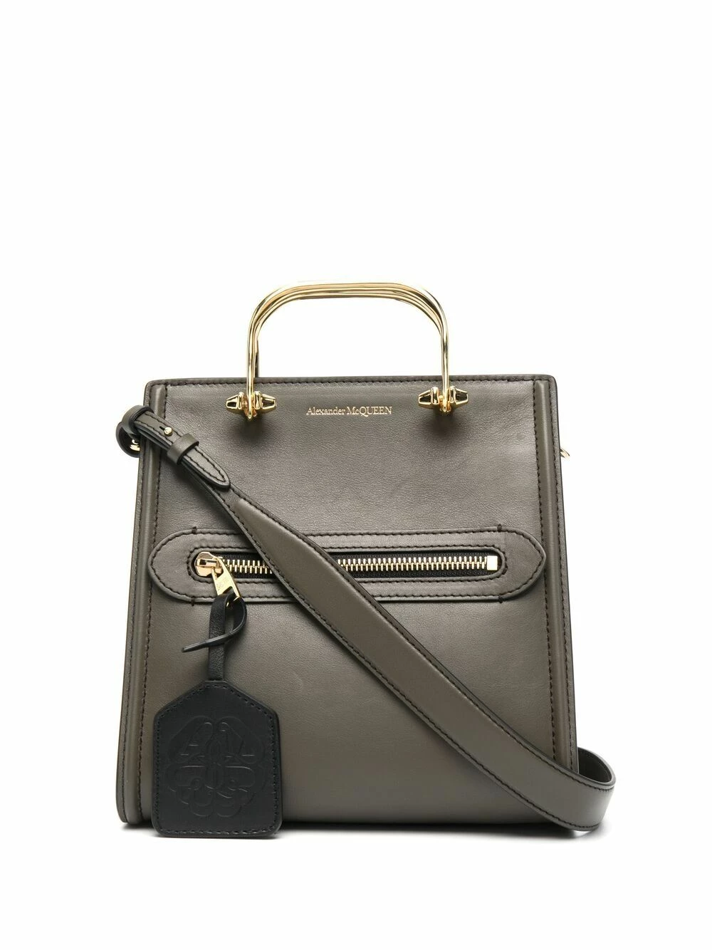 Go for gold with your next accessory update. Alexander McQueen focuses on the details of this design, with a logo print to the front, two round top handles and a leather tag. All the elements of this design add up to a winning combination.